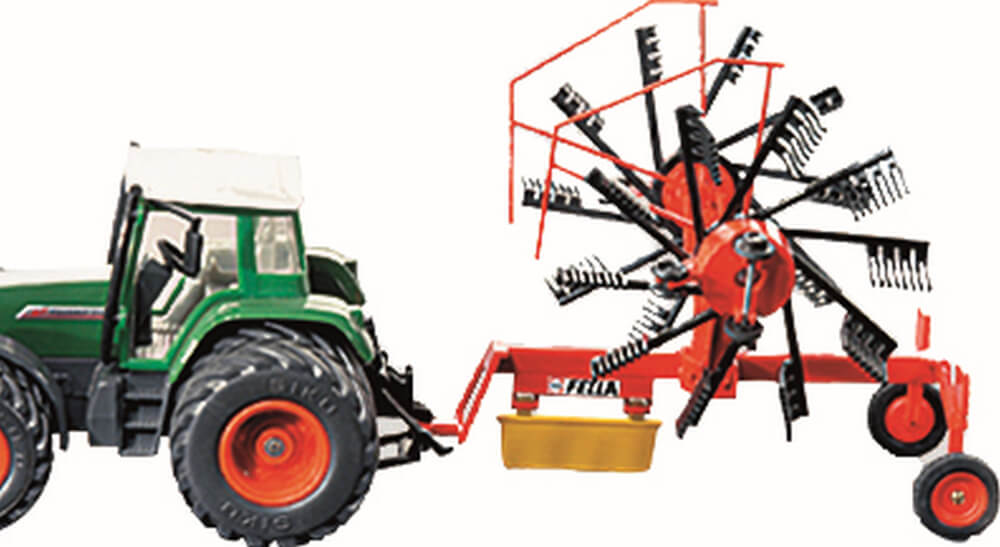 Mit dem Schwader von Fella aus der SIKU FARMER-Serie im Maßstab 1:32 kann es mit der Heu-Ernte weitergehen: Nachdem das Gras gemäht wurde, muss es mehrmals gewendet werden # solange bis es richtig trocken ist. Anschließend wird es aufgeschwadert, d.h. in langen Reihen aufgehäuft. So kann es im letzten Schritt zu Ballen gepresst und eingewickelt werden.