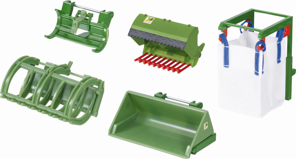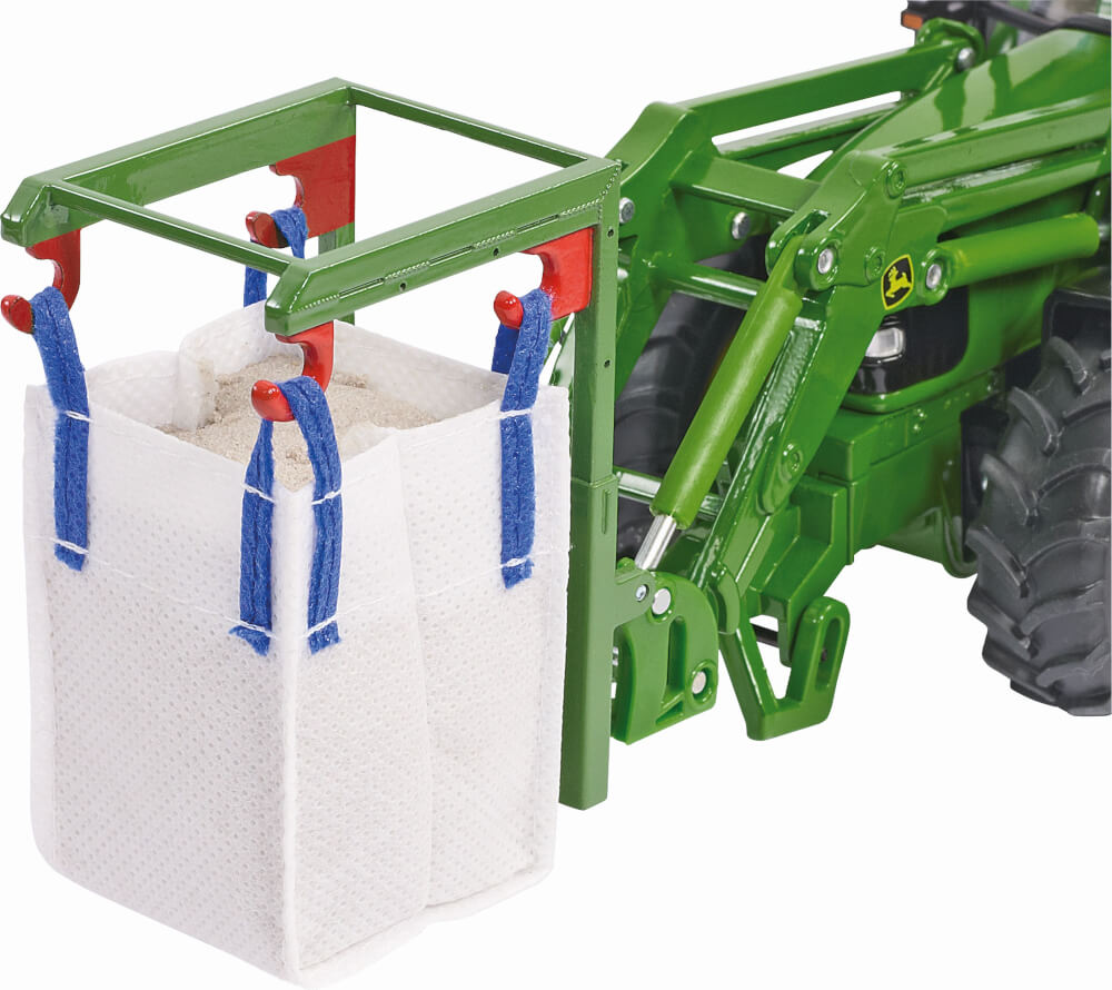 So lebendig kann die Modellwelt der SIKU FARMER-Serie im Maßstab 1:32 sein: Nach dem Vorbild von Bressel & Lade stellt SIKU ein ergänzendes Frontlader-Zubehör vor, das für alle Traktoren aus der SIKU FARMER-Serie im Maßstab 1:32 mit Frontlader-Wechselsystem geeignet ist. Das Set beinhaltet Hockkippschaufel, Poltergabel, Silageschneider # aber auch Reisiggabel und Big-Pack-Träger inklusive zugehörigem Big Pack. Damit lassen sich vielfältige Szenen im landwirtschaftlichen Modellbetrieb realistisch darstellen # eine Aufwertung für die Funktionalitäts-Breite aller Schlepper! Vor allem der Big-Pack sorgt für einen Aha-Effekt, weil er aus originalgetreuem Stoff-Material mit farblich abgesetzten Schlaufen gefertigt ist, die zum Einhängen in die Hebevorrichtung dienen. Alle Zubehörteile sind voll funktionsfähig und wurden vorbildgerecht aus einer Kombination von Kunststoff- und Metall-Teilen gefertigt. Wichtiger Hinweis: Das Set ist nicht kompatibel zum John Deere mit Frontlader aus der SIKU CONTROL32-Serie (SIKU-SIKU-Artikelnr. 6777).