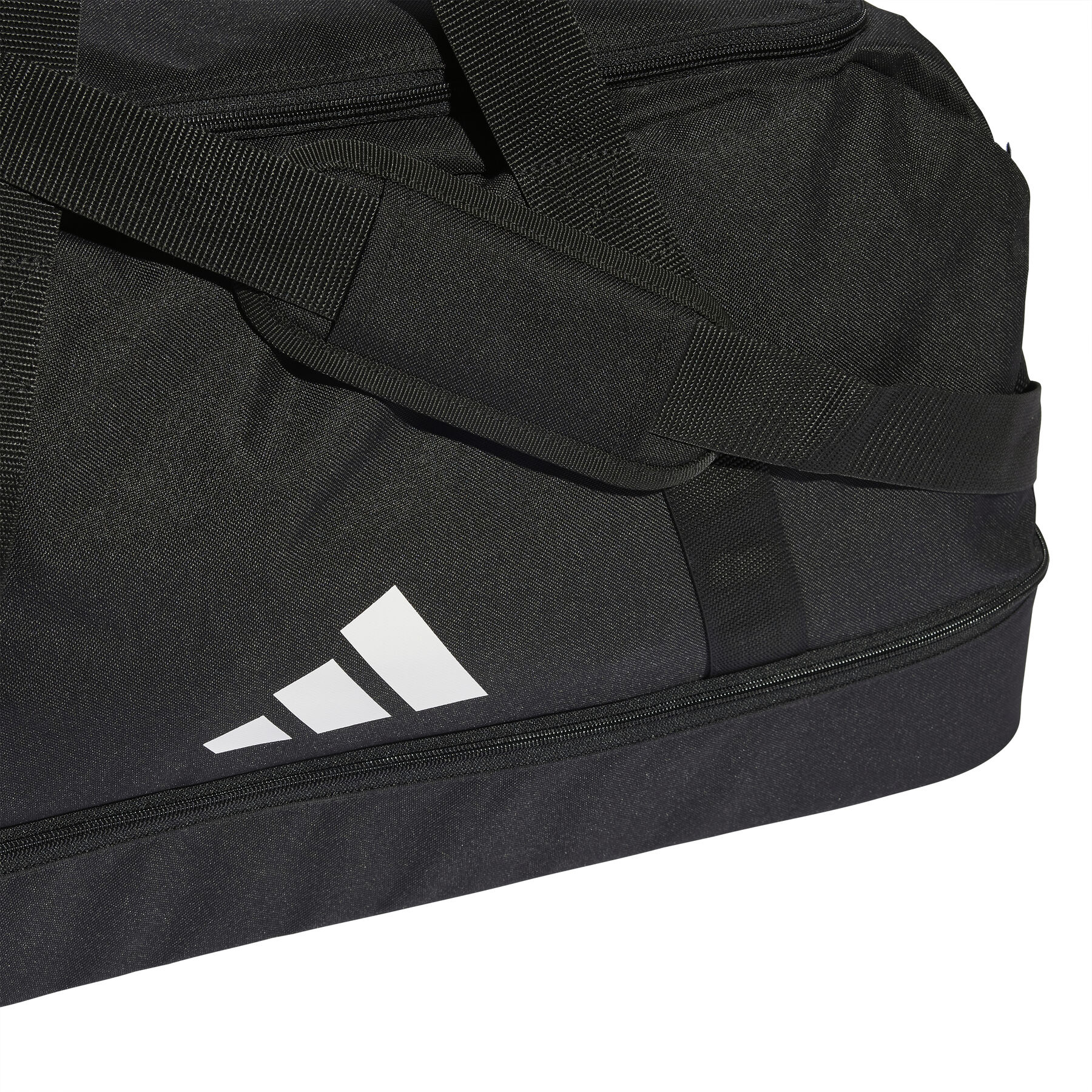 Diese adidas Tiro League Duffelbag mit Platz für deine Fußballausrüstung ist ideal für Spieltage. Im Hartschalen-Bodenfach kannst du alles Wichtige sicher und übersichtlich verstauen und in der seitlichen Mesh-Tasche hast du deine Wasserflasche immer griffbereit. Der verstellbare Schulterriemen sorgt für bequemen Tragekomfort, während du dank der U-förmigen Öffnung einen komfortablen Zugriff aufs Hauptfach und deine Ausrüstung hast. Das Produkt ist Teil unseres Engagements gegen Plastikmüll und hat einen Recycling-Anteil von mindestens 40 %.