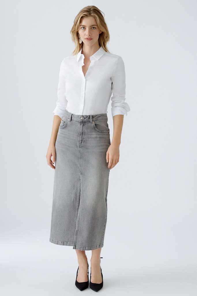 Klassischer Hemdblusenkragen mit durchgehender Knopfleiste, Knöpfe mit tonalem Oui Logo