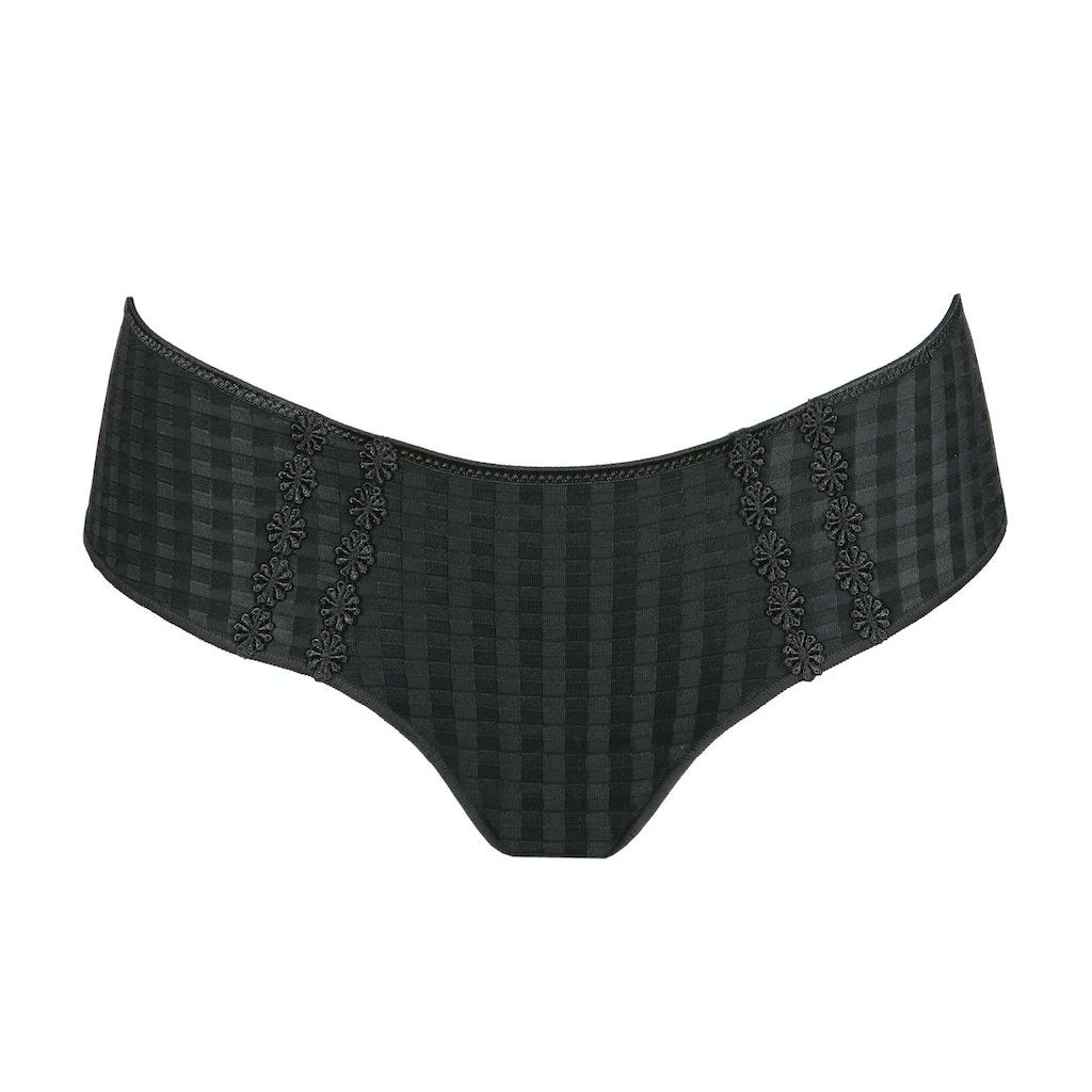 Die Hotpants haben einen niedrigen Beinausschnitt und bedecken den halben Po. Mit zwei Reihen entzückender Avero-Blümchen verziert.