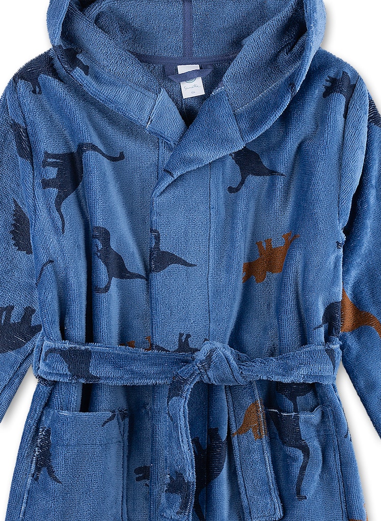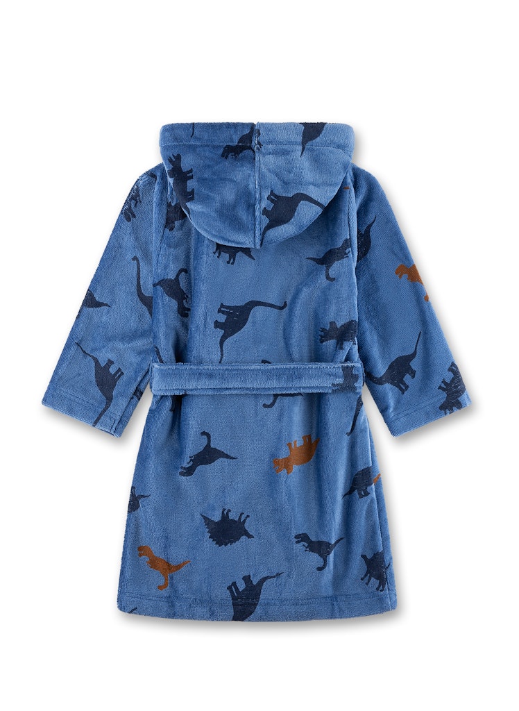Starker Jungen Bademantel von Sanetta in Blau mit einem Dino-Alloverprint.