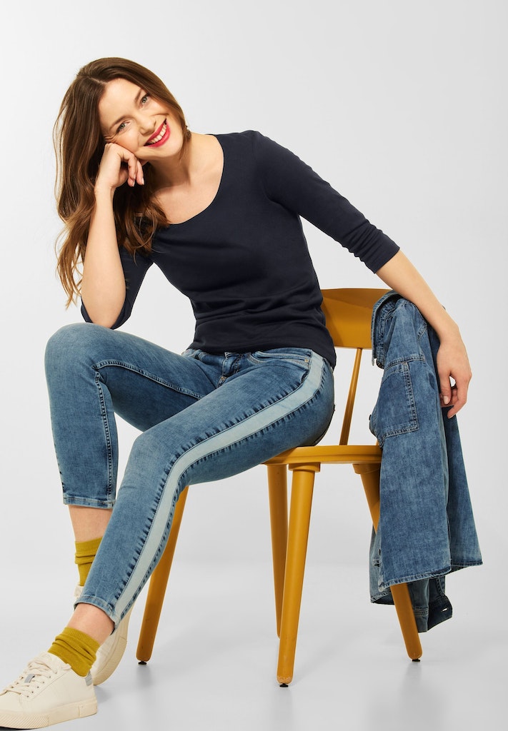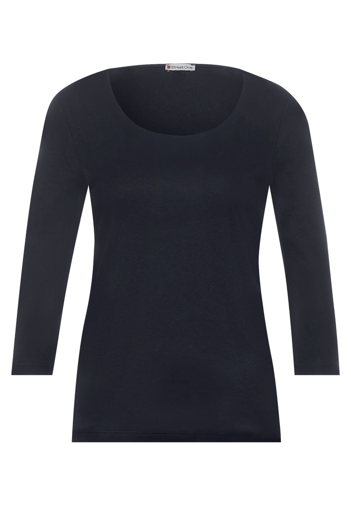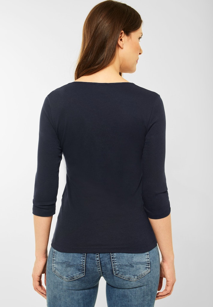 Gar nicht eintönig! Basic in Bestform zeigt sich in dem femininen Damenshirt im Style Pania von Street One. Ein klassischer Rundhalsausschnitt trifft hier auf sportliche 3/4 Ärmel. Die Unifarbe lässt sich toll kombinieren. Die Vorderseite ist zweilagig genäht und garantiert dadurch einen hohen Tragekomfort.