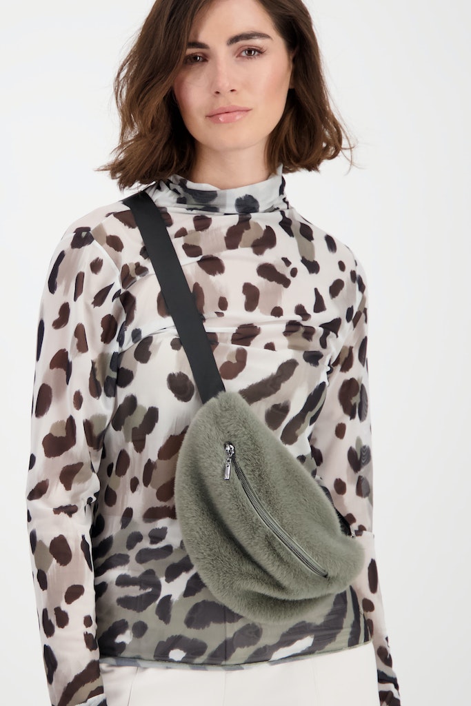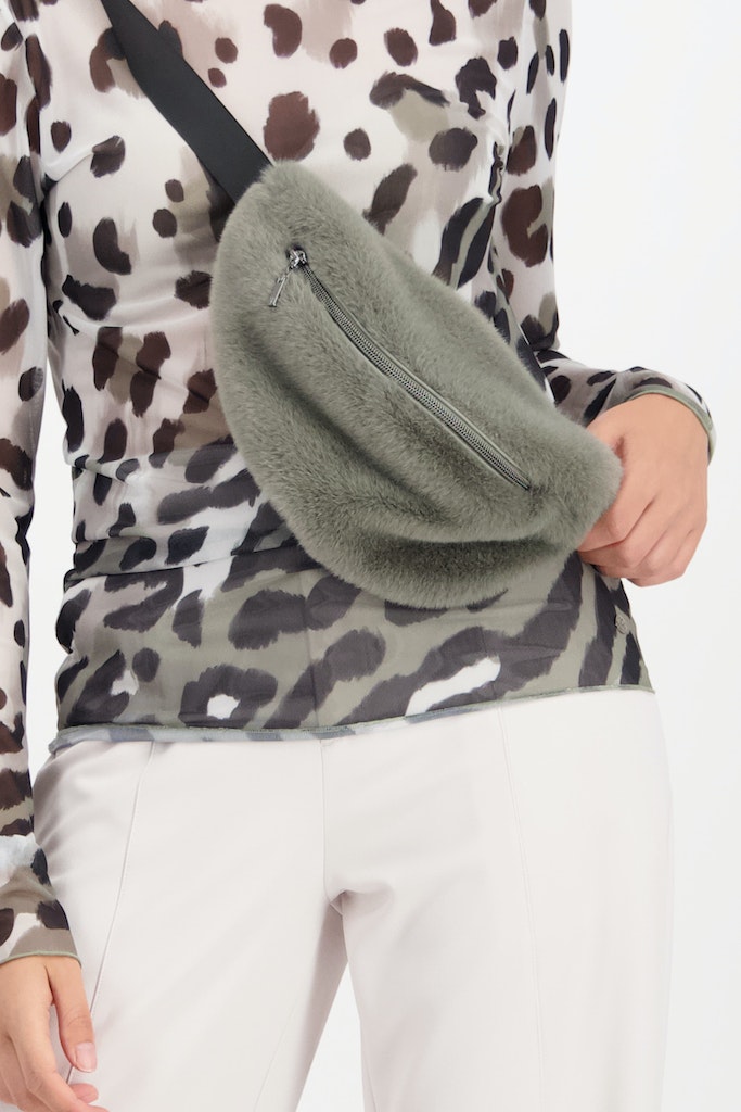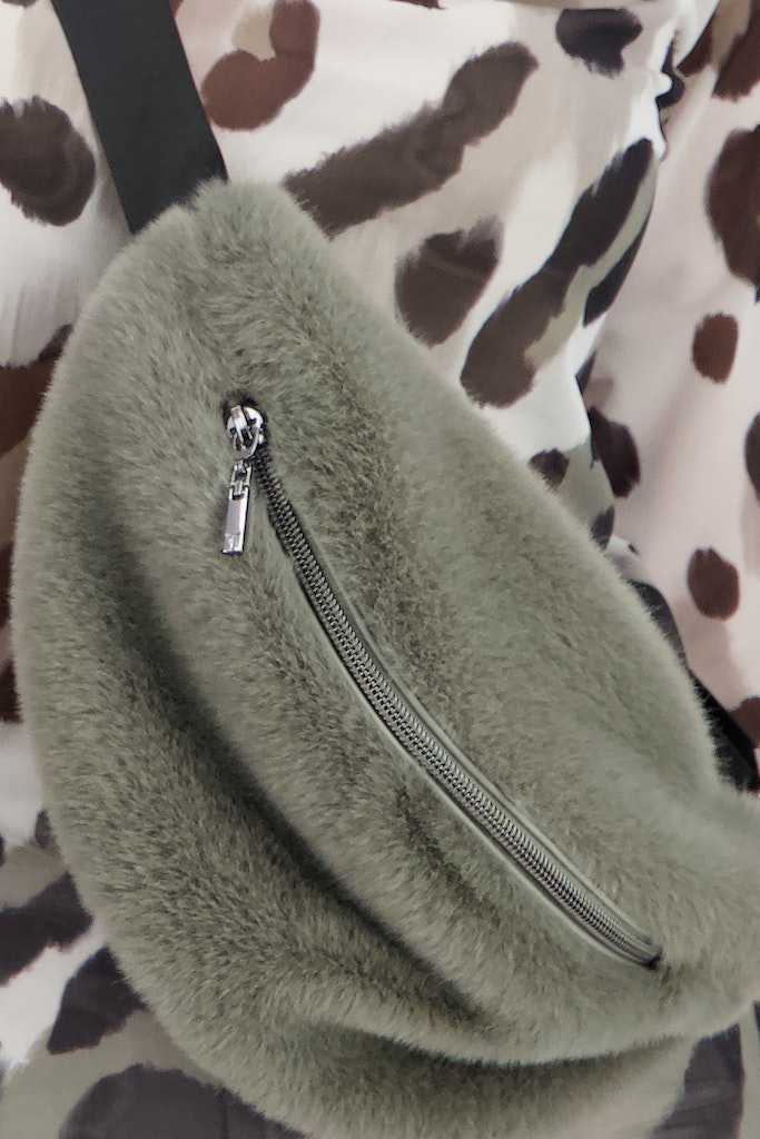Der Gurt dieser flauschigen Tasche mit Reißverschluss ist beliebig verstellbar und lädt somit zum vielfältigen Tragen ein.