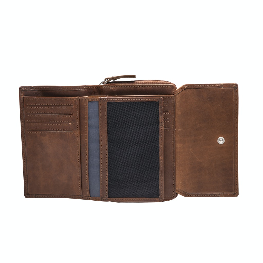* schließt mit Überschlag und Reißverschluss
