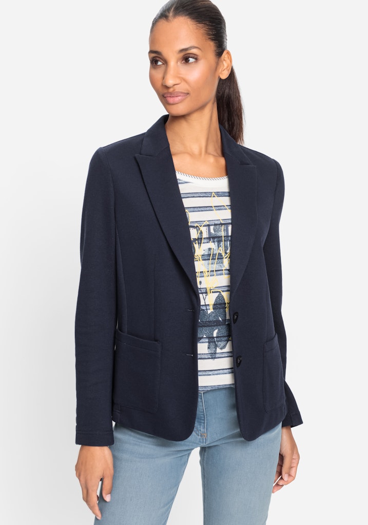 Moderner Jersey-Blazer mit sportiver Note, Mit zwei Knöpfen und aufgesetzten Taschen, Ärmelabschlüsse mit kleinen Zierknöpfen, Aus softem Polyester-Baumwoll-Mix für hohen Tragekomfort, Lässig mit Jeans oder casual-chic mit Stoffhose zu kombinieren