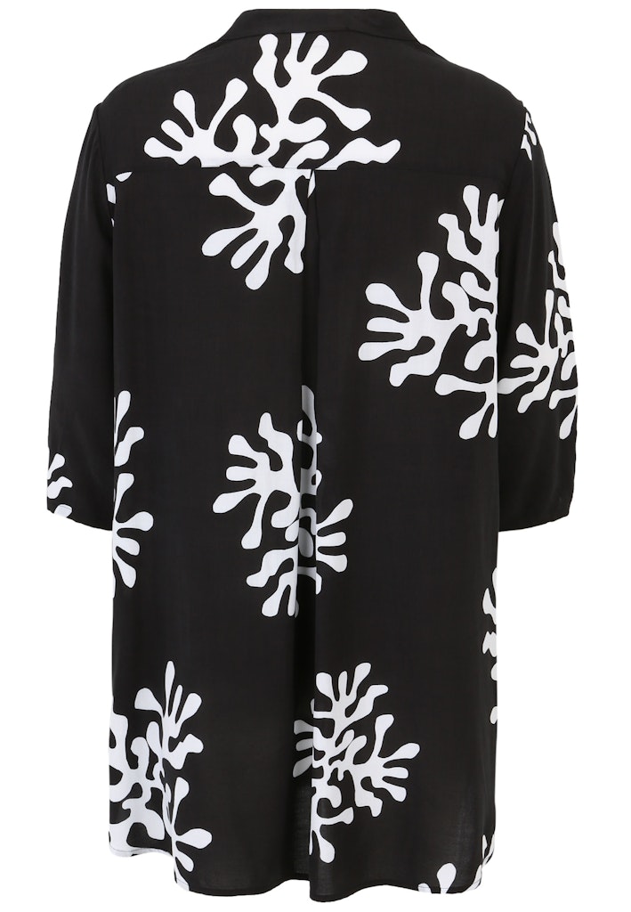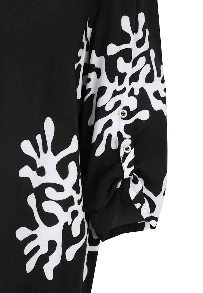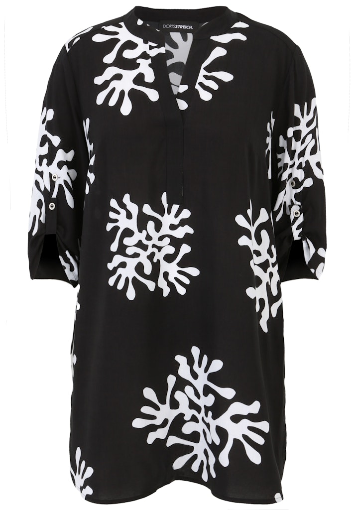 Die Bluse von Doris Streich besticht durch ihren markanten grafischen Korallen-Print. Das weiche Viskose-Material, die fließende Passform mit Weite gebender Falte im Rückenteil umspielt Ihre Figur perfekt. Die 3/4-Ärmel lassen sich verstellen, ob
