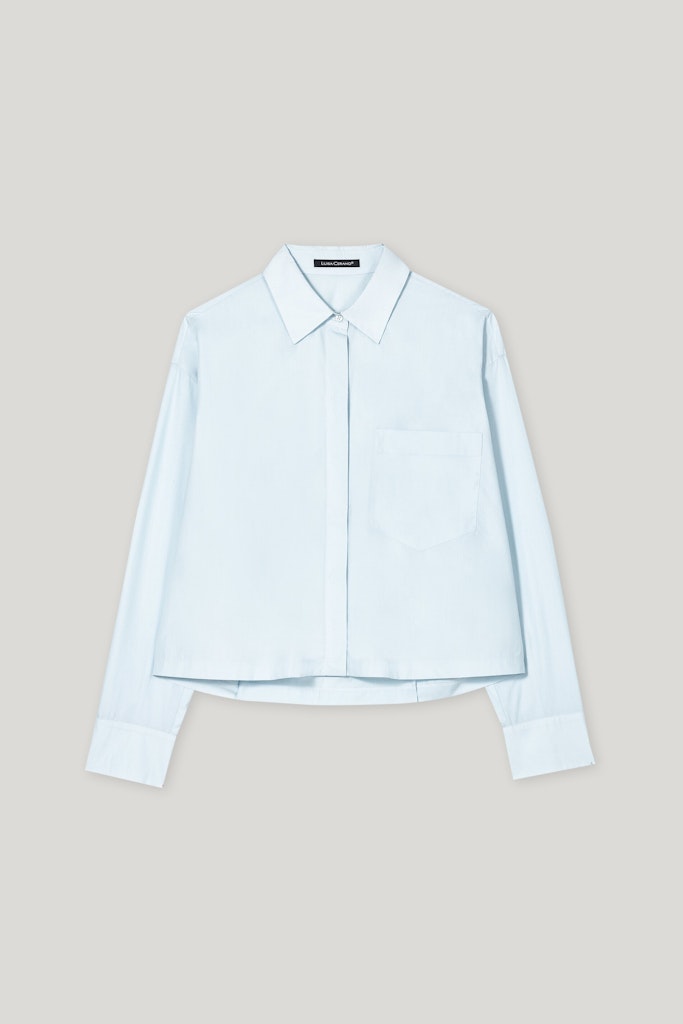 Hemdbluse aus feiner Baumwolle in schlichtem, sportivem Design mit klassischem Hemdkragen und verdeckter Knopfleiste mit Ripsband. Die aufgesetzte Brusttasche und die geknöpften Manschetten runden den Look ab.