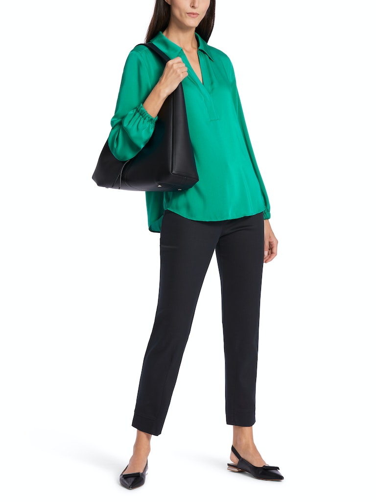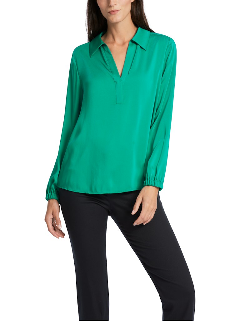 Bluse im Polo-Stil|Mit Kragen und halber Leiste im Vorderteil designt, präsentiert diese Bluse einen sportiven Polo-Stil. Passend dazu sind die Ärmelsäume mit einem elastischen Abschluss versehen. Im Rücken besitzt die Bluse eine Quetschfalte. Einen gelungenen Twist zu dem legeren Stil bildet die weite Silhouette im weich fließenden Fall.|Weite Silhouette|Elastischer Armabschluss|Made in Europe|Quetschfalte im Rücken|Das Model ist 179 cm groß und trägt N3/38.