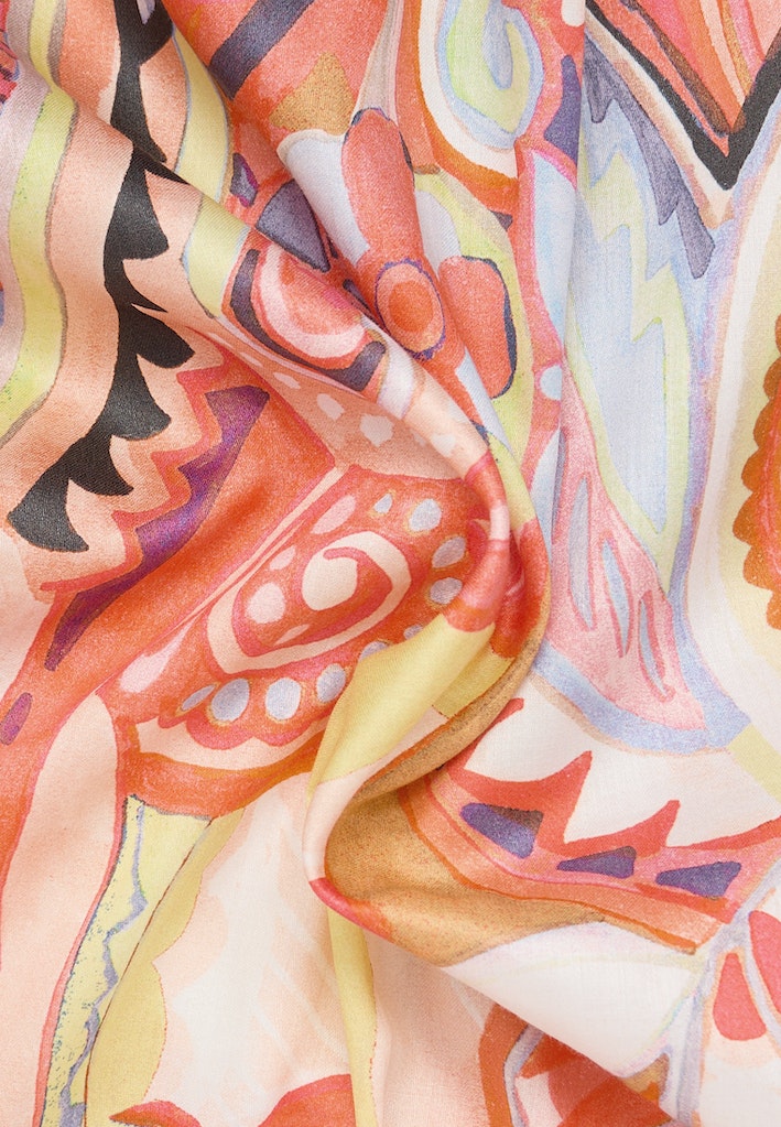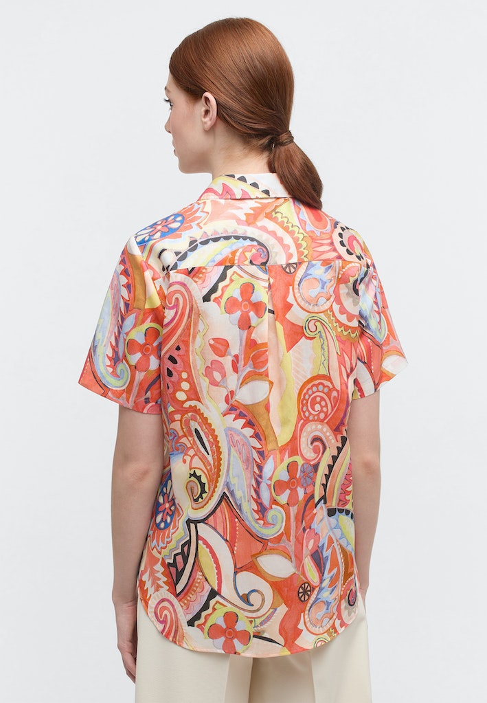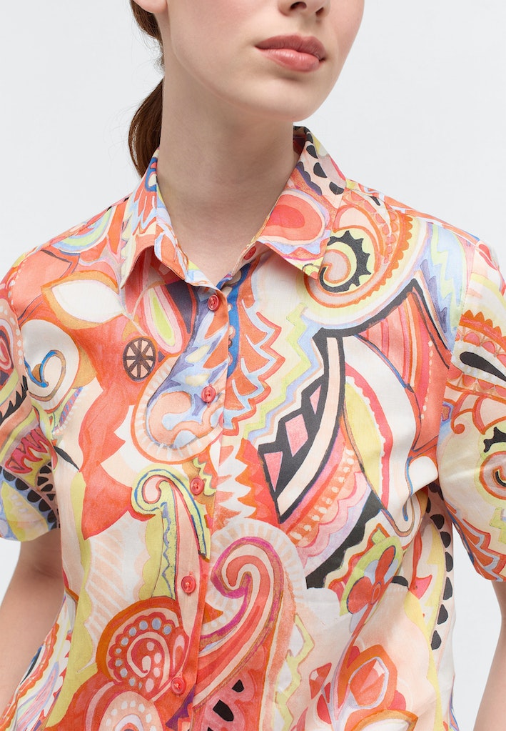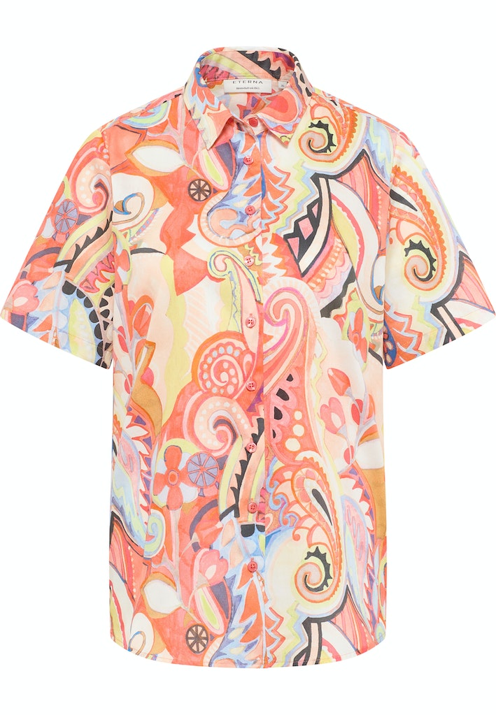 Diese topmodische, gerade geschnittene Kurzarmbluse (Armlänge 25 cm / Rückenlänge 70 cm) erhält durch den Multicolor Maxi Paisley Print und den lässigen Schnitt einen sportlich-eleganten Touch .