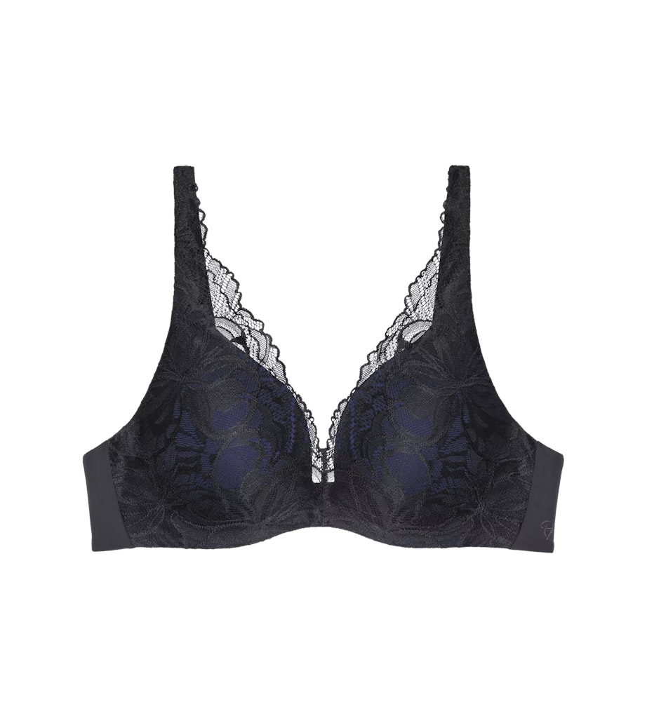 Ein gepaddeter BH mit einem weichen, flexiblen Bügel und einem flach-auslaufendem Cup-Rand, der die Brust anhebt und zentriert. Die integrierte Cup-Wattierung reguliert den Lifting-Effekt, stärker für kleinere Brüste und sanfter für größere. Diesem BH kann die Trägerin vertrauen, ohne dass sie ihn spürt. Die weicher Spitze und das zarte, weiche Mikrofasermaterial, bestehen zu einem Teil aus recycelten Komponenten.