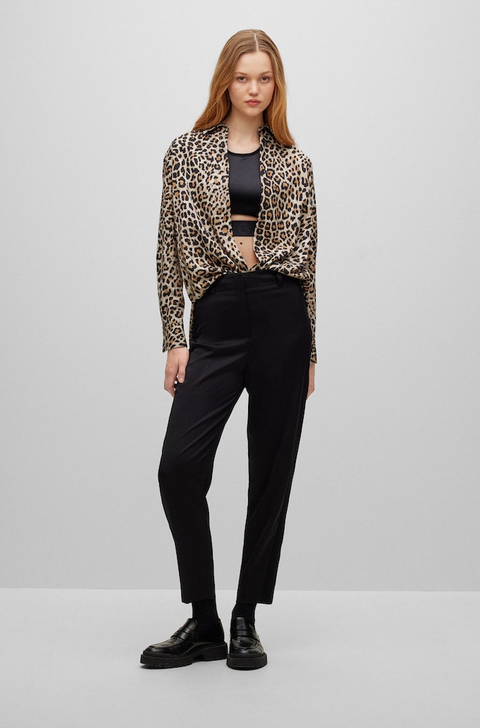 BOSS Damen Bluse mit Leo-Print THE BOYFRIEND SHIRT