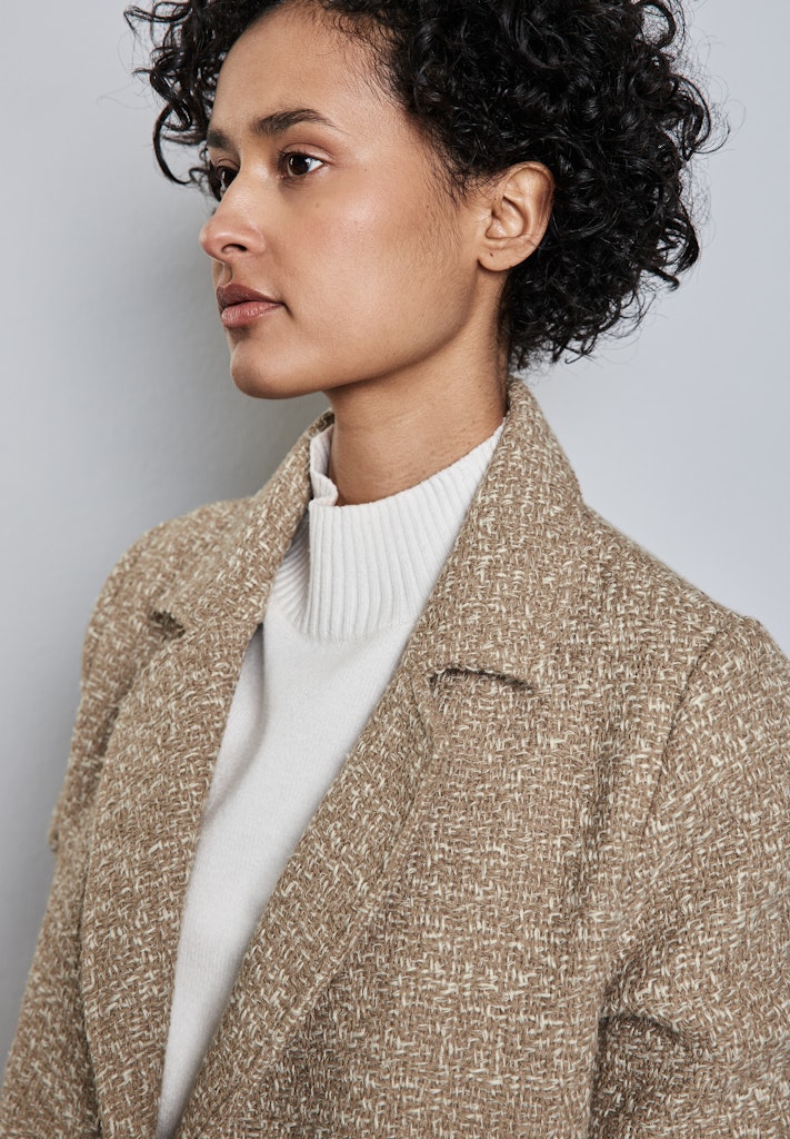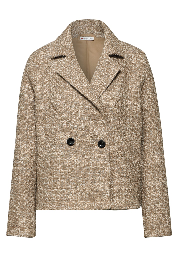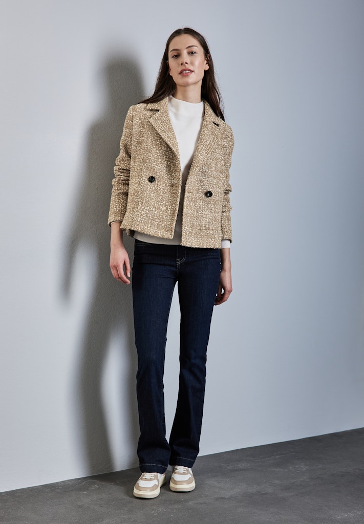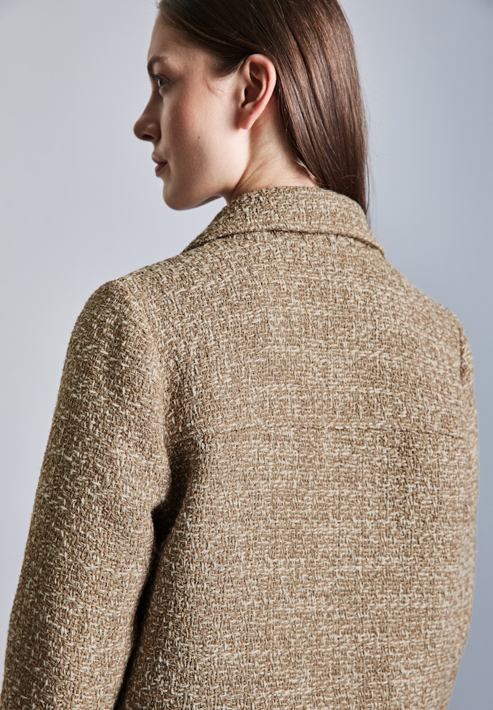 Die Bouclé-Jacke von Street One für Damen ist ein modisches Highlight mit ihrem einzigartigen Bouclé-Muster. Der Reverskragen und die seitlichen Taschen bieten eine klassische Note, während der angenehme Materialmix für Komfort sorgt. Ein stylischer Begleiter für viele Anlässe. Damenjacke Reverskragen Seitliche Taschen Modische Bouclé-Struktur Angenehmer Materialmix Material: Obermaterial: 86% Polyester, 14% Baumwolle; Futter: 100% Polyester