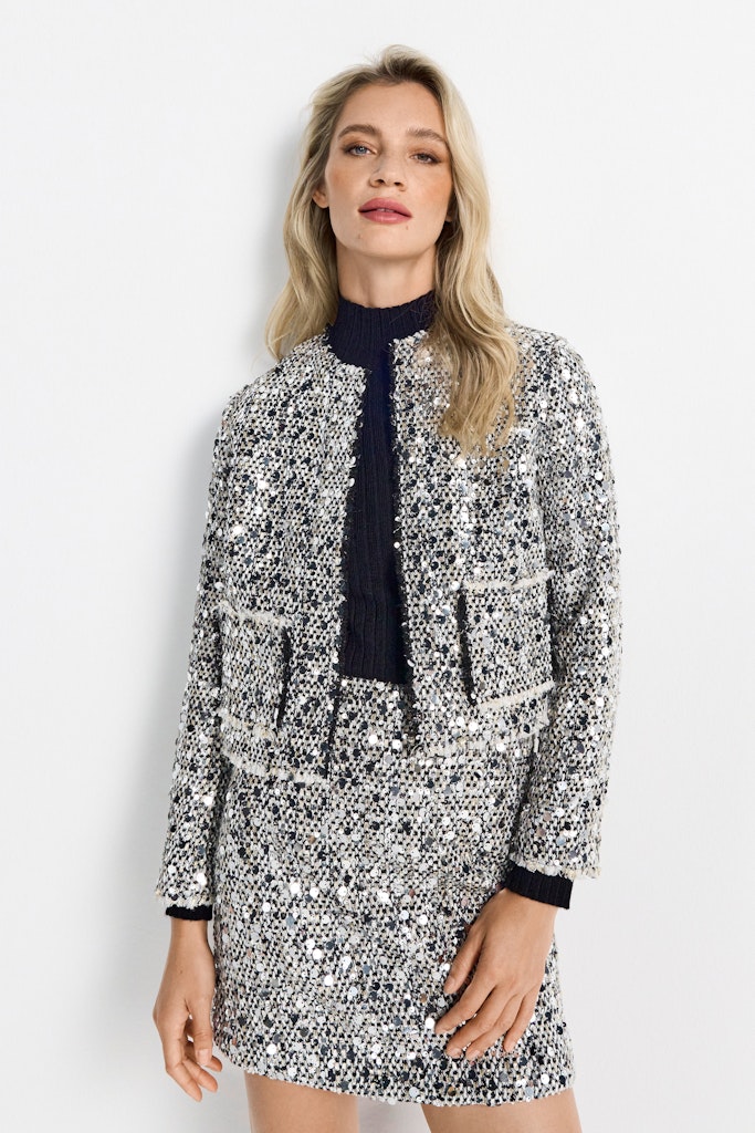 Boxy sequins tweed jacket