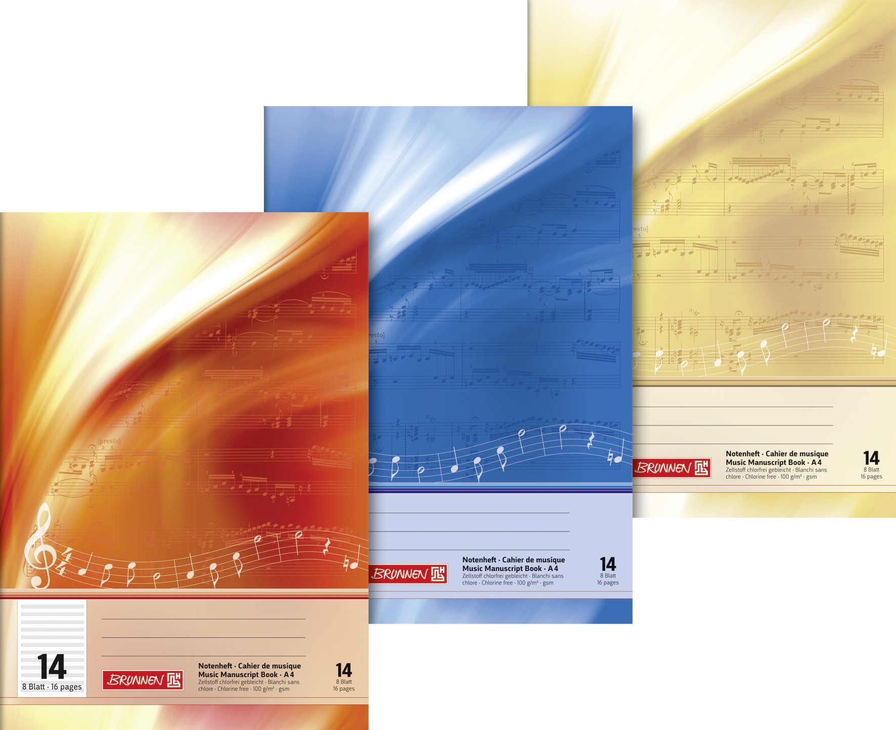 Brunnen 1046340 Notenheft (A4, 8 Blatt, Lineatur 14, mit Extraseiten), 1 Stück