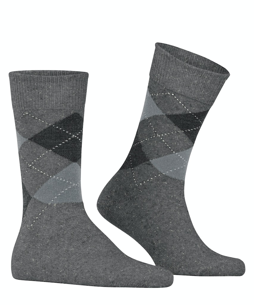 Passend zur kalten Jahreszeit gibt es die klassische Burlington-Socke in winterlicher Tweed-Optik, auf der das markentypische Argyle-Muster ideal zum tragen kommt. Ein Style der dank großer Farbvielfalt vielseitig kombinierbar ist und ein Plus an Komfort bietet. Abgerundet wird das stilechte Design wie gewohnt mit dem Burlington Clip links.