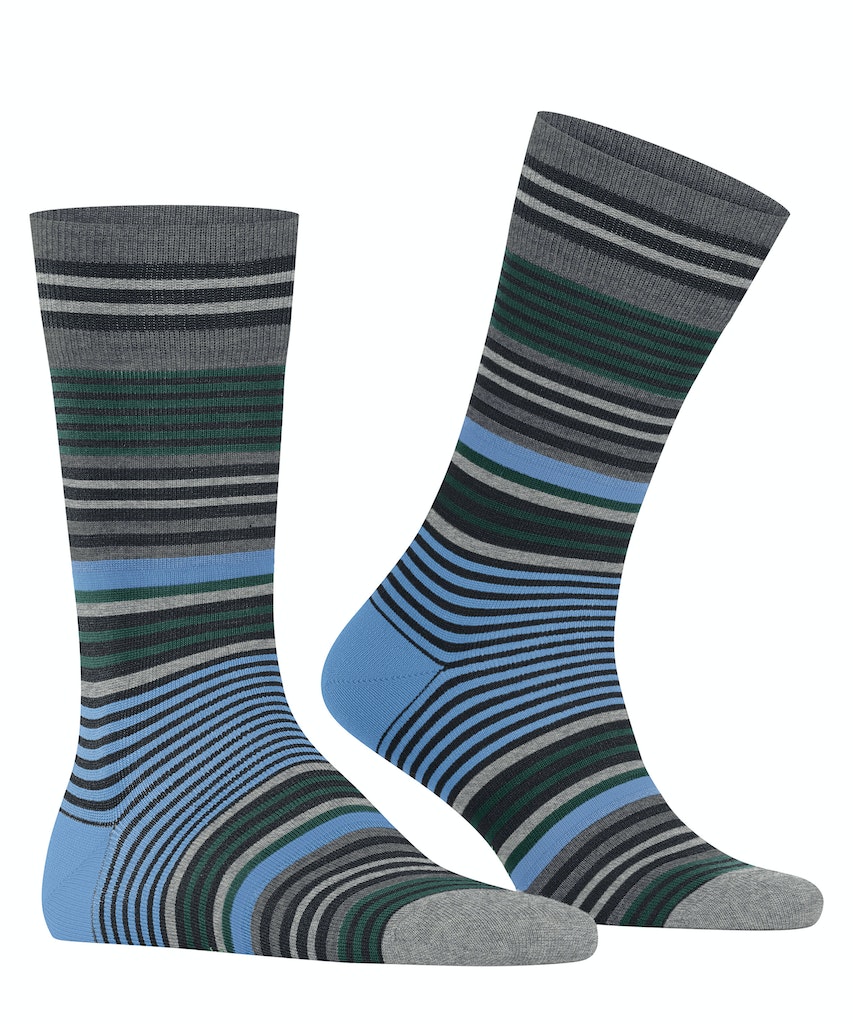 Die Strümpfe machen mit ihrer fröhlichen Streifenoptik auf sich aufmerksam und geben jedem Alltagsoutfit ein fröhliches Finish. Dank des trageangenehmen Schurwolle-Mix überzeugen die Herrensocken mit einer perfekten Passform und wärmenden Eigenschaften.