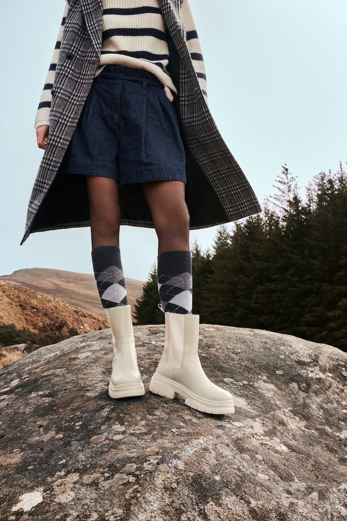 Cosy Feelings für die Füße mit dem Retro-Klassiker Whitby, der mit Argyle-Muster, besonders weicher Haptik und Farbbrillanz auf ganzer Linie überzeugt. In Kombination mit Ankle Boots kreieren die Kniestrümpfe einen topmodischen Style für Tag und Abend.