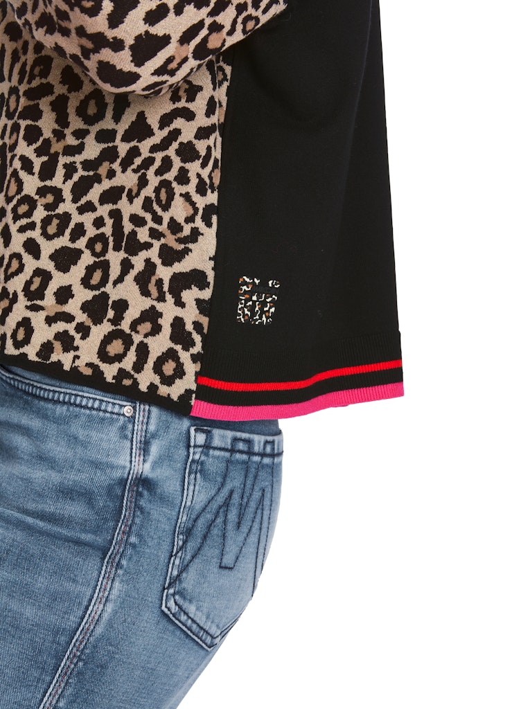 Cardigan Knitted in Germany|Weiter Cardigan aus viskosebasiertem Fasermix und mit weichfließender Kontur. Front und Ärmel sind gemustert, das Rückenteil ist Uni. Das Leo-Dessin wird durch Streifeneinfassungen an den Kanten akzentuiert. Der Cardigan ist Knitted in Germany: Er wird mit modernsten Technologien in Deutschland gestrickt und veredelt. Die einzelnen Teile - wie Rücken- und Vorderteil etc. - werden in europäischen Partnerbetrieben zusammengenäht.|Gerade Form|Knitted in Germany|V-Ausschnitt|Knopfverschluss|Das Model ist 179 cm groß und trägt N3/38.