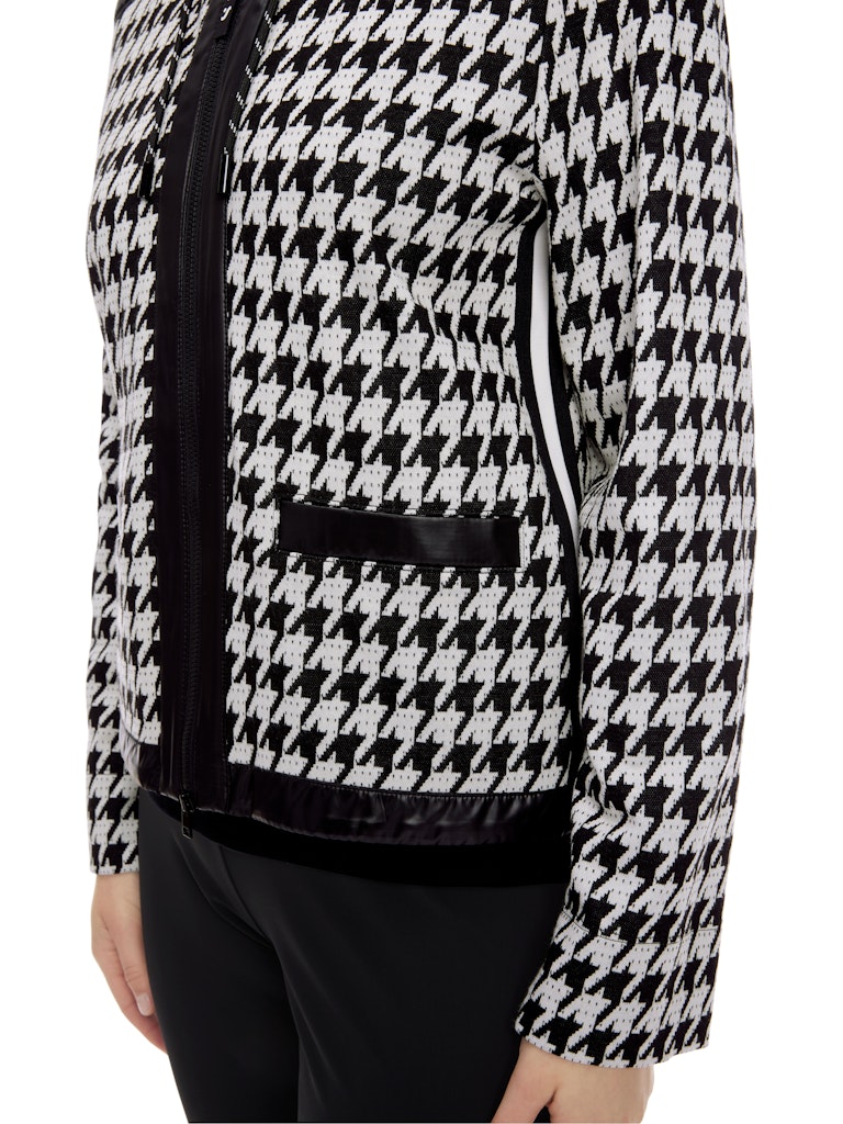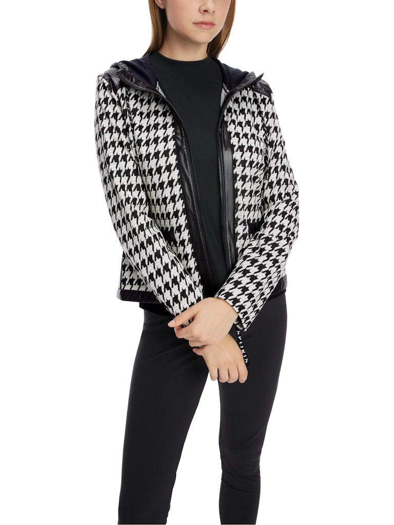 Chickcheck-Jacke mit Kapuze|Trendig präsentiert diese locker sitzende Jacke ein groß skaliertes Chickcheck-Dessin. Ergänzt wird der extrovertierte Stil durch shiny Nylon an der großen Kapuze, der Schulterpartie und dem Saum. Die Jacke wird mit einem Zweiwege-Reißverschluss geschlossen. Streifen an der Seite betonen den extrovertierten Stil. Tragekomfort bringt der softe Material-Mix mit Viskose.|Lockerer Schnitt|Mit shiny Nylon|Made in Europe|Zweiwege-Reißverschluss|Das Model ist 179 cm groß und trägt N3/38.