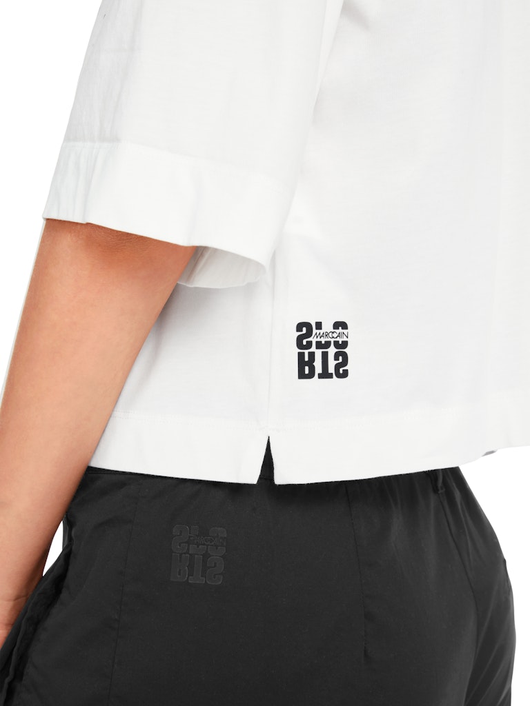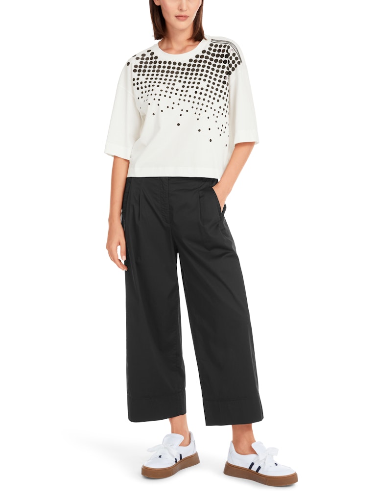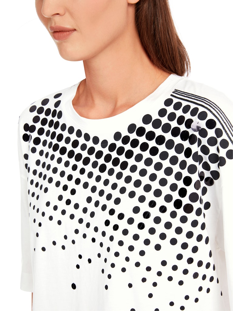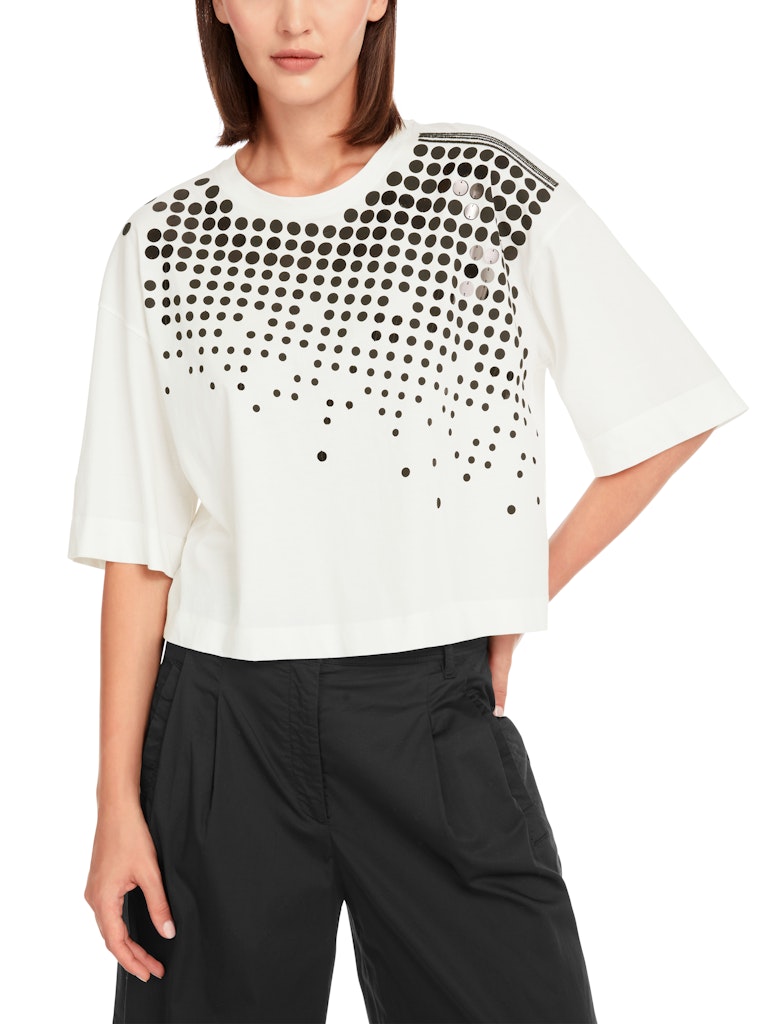 Cropped T-Shirt mit Graphik-Print|T-Shirt aus reiner Baumwolle. Das Modell ist weit und hat den angesagten Cropped-Style. Cool, die Computer-Graphik, die partiell mit schimmernden Pailletten und Perlen bestickt ist.|Weite Form|Cropped|Rundhals|Print & Applikation|Das Model ist 179 cm groß und trägt N3/38.