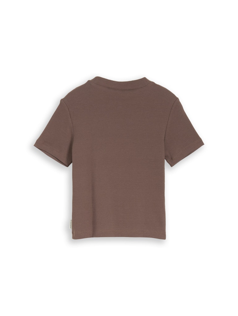 Cropped T-Shirt mit kleinem Stehkragen aus einem elastischen Rippstrick.