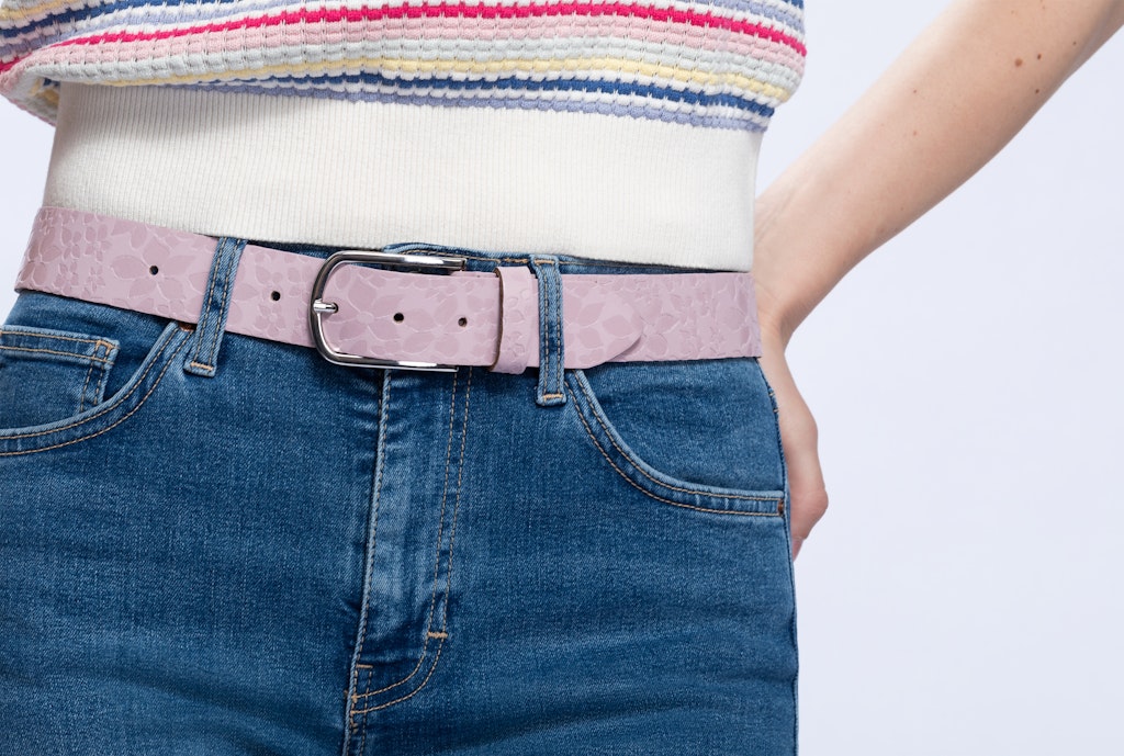 Der Gürtel ist 35 mm breit, mit Prägung und einer klassischen Dornschließe in glänzendem Silber verziert. Dieser Gürtel ist die ideale Ergänzung zu allen Freizeit-Outfits und garantiert einen femininen und aufsehenerregenden Look. Durch die vollständige Fertigung in der firmeneigenen Produktion in Metzingen, Deutschland, erhalten Sie ein Produkt, das nur wenige Kilometer bis zu Ihnen zurücklegt und jede weitere Frage nach fairem Handel oder korrekten Produktionsbedingungen überflüssig macht.