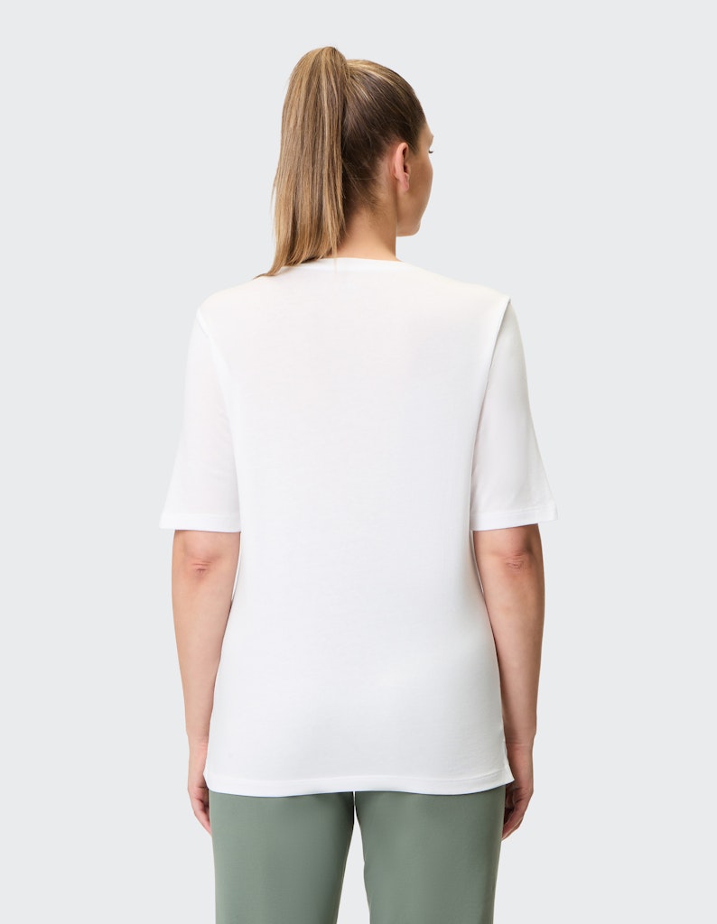 Femininer Look und hoher Tragekomfort: T-Shirt für Damen MADELEINE Das T-Shirt MADELEINE sind ein absolutes Muss im Kleiderschrank jeder modebewussten Frau, weil sie zu vielen Gelegenheiten passen und sich einfach sowie vielseitig kombinieren lassen. Das trifft auch auf das Freizeit- und Sportshirt für Damen MADELEINE zu. Ob zum Yoga oder zum Walken, ob zum Einkaufen oder für die Morgenrunde mit dem Hund, ob zu einer bequemen Sporthose oder zu einer modischen Jeans: Das T-Shirt für Damen MADELEINE eignet sich für jede Gelegenheit. Sie können es sowohl beim Sport als auch im Alltag tragen und zu Ihrer Lieblingskleidung kombinieren. Mit dem trendigen Design machen Sie bei allen Aktivitäten eine gute Figur. Doch nicht nur hinsichtlich der Optik punktet das Freizeit- und Fitness-Shirt. Der feminine Schnitt und das weiche Material garantieren stets einen hohen Tragekomfort. Der hochwertige Stoff zeichnet sich durch folgende Eigenschaften aus: • Modalmischung mit Elasthan• Hautfreundlich• Pflegeleicht• Weicher Griff Überzeugen Sie sich selbst vom T-Shirt für Damen MADELEINE und bestellen Sie jetzt die passende Größe zum Wohlfühlen.