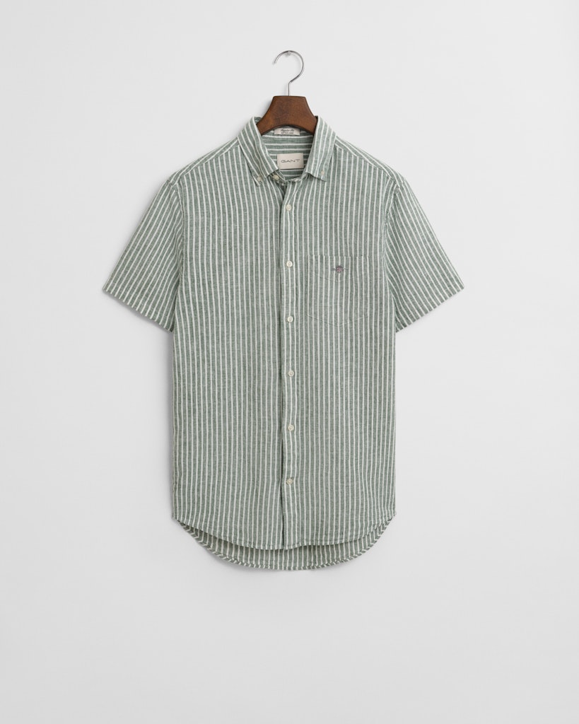 Regular Fit Baumwoll Leinen Kurzarmhemd mit Streifen