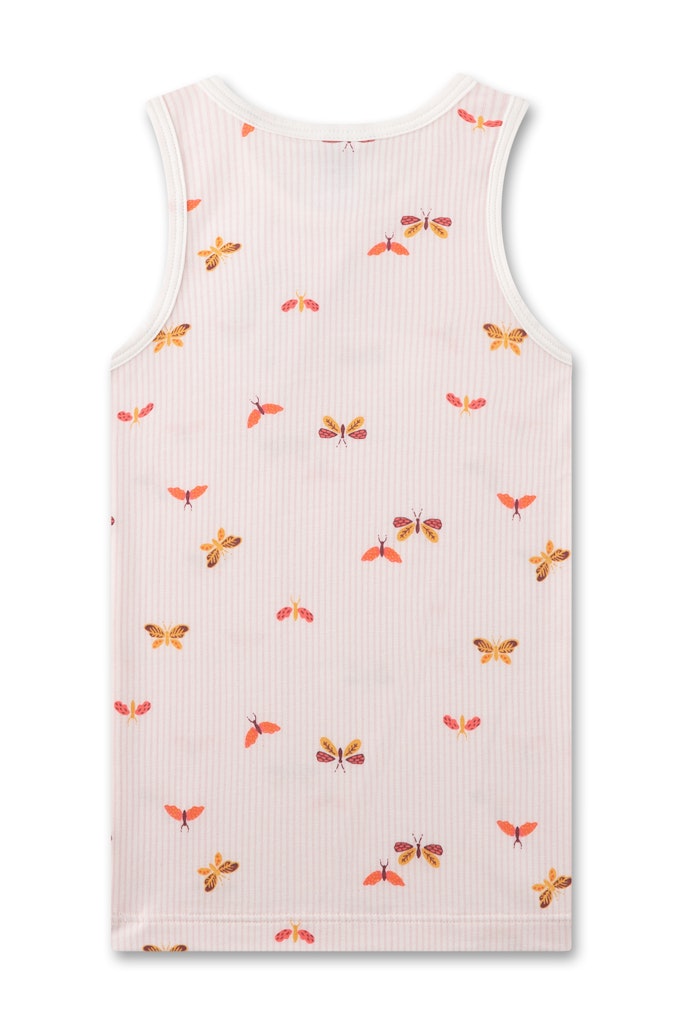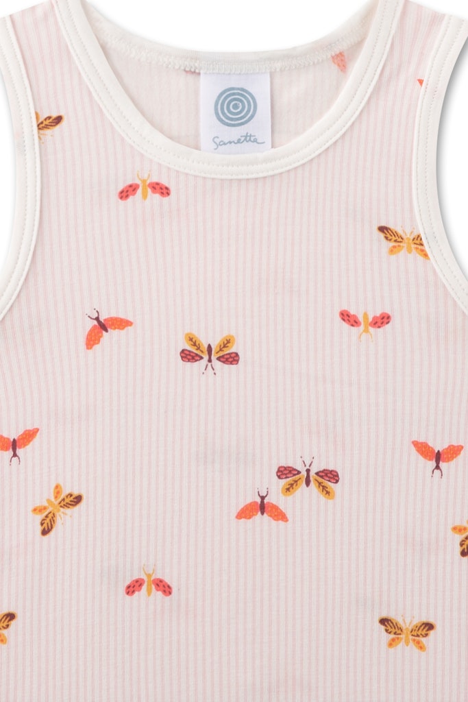 Rosa gestreiftes Mädchen-Unterhemd mit einem wunderhübschen Schmetterling-Alloverprint von Sanetta.