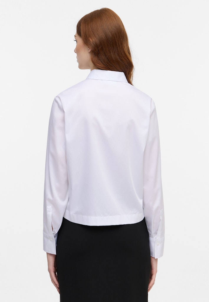 Der leichte Glanz des bügelleichten Satingewebes (95% Baumwolle, 5% Elasthan, STRETCH) wirkt edel und lässt diese Bluse sehr hochwertig aussehen.