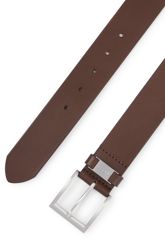 Eleganter BOSS Gürtel aus gegerbtem italienischem Leder mit 4,0 Zentimetern Breite, der mit einem Logo-Detail aus Metall an der Schlaufe versehen ist. Für eine optimale Passform sollte der Gürtel eine Größe größer als dein Taillenumfang sein.