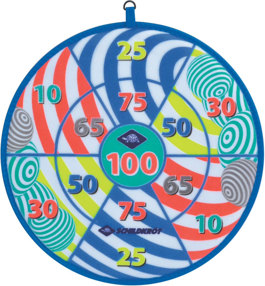 Das neue Schildkröt Soft Dart Set besteht aus einer Klett-Dart-Scheibe ( 38cm), die beidseitig mit unterschiedlichen Zielfeldern bedruckt ist und von beiden Seiten bespielt werden kann. Mit den Klettbällen ( 4cm) wirft jeder Spieler abwechselnd 3 farbige Bälle auf das Ziel, um die höchsten Zahlen zu treffen. Nachdem die Zahlen addiert wurden, gewinnt der Spieler, der die meisten Punkte erzielt. Die Klettbälle besitzen eine spezielle Kurzklette, die auch bei festem Aufprall auf der Scheibe ''kleben'' bleibt und nicht abspringt. Soft Dart Set für 2 Spieler. Der ungefährliche Dart-Spaß für die ganze Familie. Sie müssen sich keine Sorgen über scharfe Pfeile machen, die Verletzungen verursachen oder Löcher in die Wand machen. Die über 100 Jahre alte deutsche Marke Schildkröt gilt als Erfinder des Tischtennisballs. Heute bietet Schildkröt neben Tischtennis auch eine sehr umfangreiche Funsport-Kollektion an und gilt als Marktführer in diesem Bereich.
