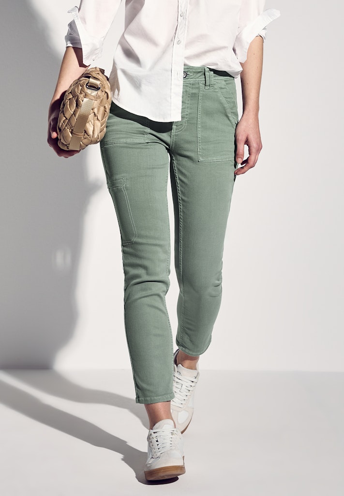 Die Jeans im Cargo-Look von Street One für Damen überzeugt mit ihrem Loose Fit und der Mid Waist. Aufgesetzte Taschen im Cargo-Stil sowie seitliche Eingrifftaschen verleihen der Jeans eine lässige Optik. Der Baumwollmix mit Stretchanteil garantiert ein angenehmes Tragegefühl. Jeanshose im Loose Fit Mid Waist und Slim Legs Seitliche Taschen Aufgesetzte Cargo-Look Tasche Baumwollmix mit Stretchanteil Material: 81% Baumwolle, 17% Polyester, 2% Elasthan