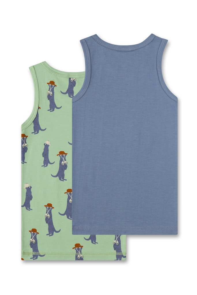 Unterhemden-Doppelpack für Jungs in Grün und Blau von Sanetta mit einem lustigen Erdmännchen-Print.