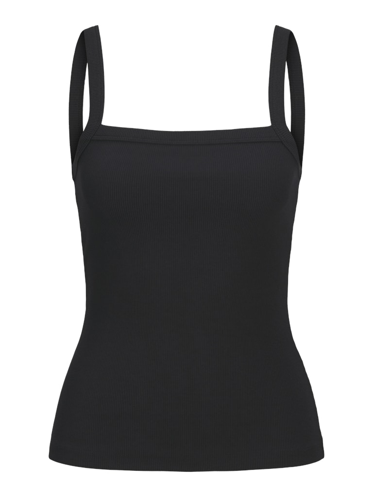 Dieses Basic-T-Shirt ist ein Must-have, das toll zu Jeans, Shorts und Hosen aussieht.Rippstrick hat Längsrippen und ist besonders dehnbar für ein bequemes Tragegefühl. - Produkttyp : Top - Hals : Trapezausschnitt - Ärmel : Ohne Ärmel - Passform : Normal geschnitten