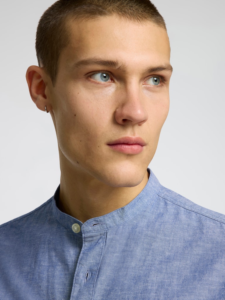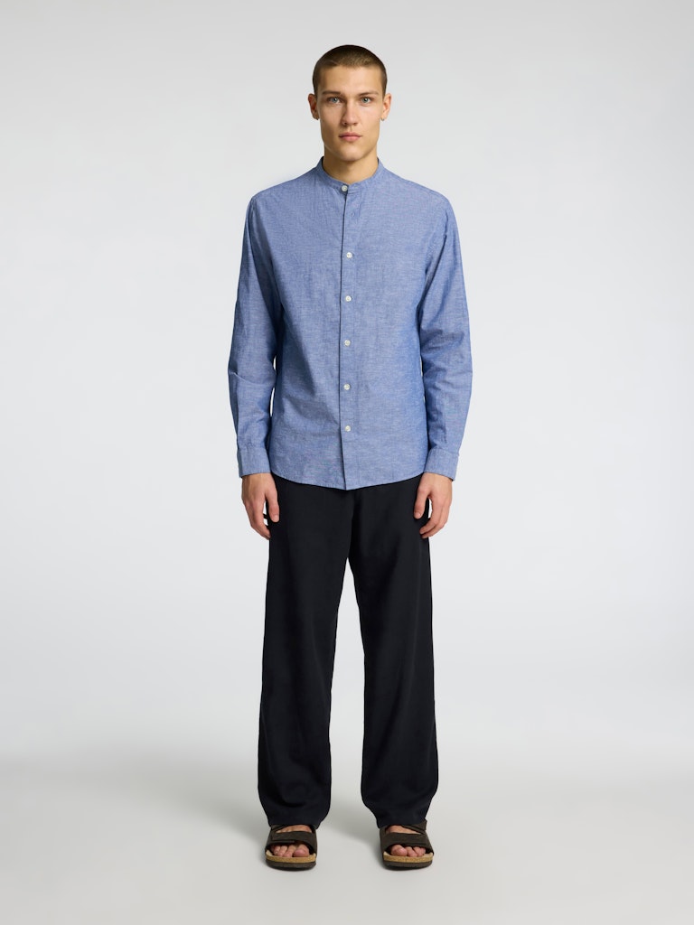 Dieses Hemd aus Leinengemisch hat genau die Eigenschaften, nach denen wir uns bei steigenden Temperaturen sehnen. Es ist ein langärmeliges Sommer-Must-have, das du offen über einem T-Shirt oder mit hochgekrempelten Ärmeln tragen kannst, um den Beach-Look noch zu unterstreichen. Dazu passen Chinoshorts und Ledersandalen.- Stehkragen- Geknöpfte Vorderseite- Lange Ärmel- Gerundeter Saum- Enthält Baumwolle und Leinen- Regular FitENTHÄLT RECYCELTE BAUMWOLLEDas Hauptmaterial dieses Produkts besteht zu mindestens 20% aus recycelter Baumwolle. Recycelte Baumwolle schont die natürlichen Ressourcen und reduziert Textilabfälle.