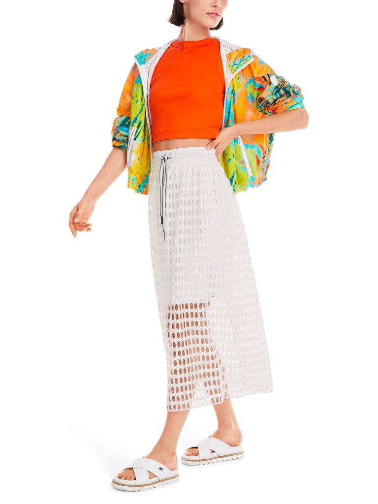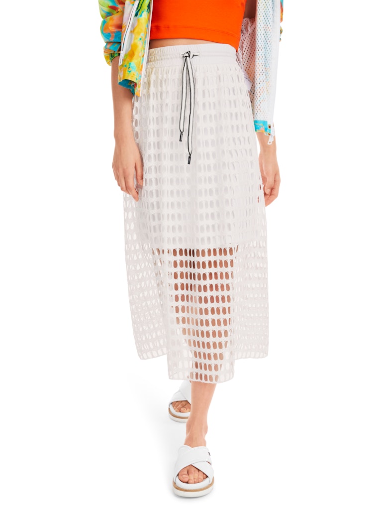 Luftiger Rock im Netz-Ajour-Gestrick|Luftig leicht, aus fließendem Netz-Ajour-Gestrick ist dieser locker sitzende Rock die richtige Wahl für hohe Temperaturen. Er kommt in Midilänge. Dank kurzem Innenfutter ist er blickdicht. Mit seinem elastischen Bund trägt sich der Rock ganztägig sehr angenehm. Durch das kontrastfarbene Band lässt sich seine Taille individuell verstellen.|Lockerer Schnitt|Mit Innenfutter|Elastischer Bund mit Kordel|Fließendes Material|Das Model ist 179 cm groß und trägt N3/38.
