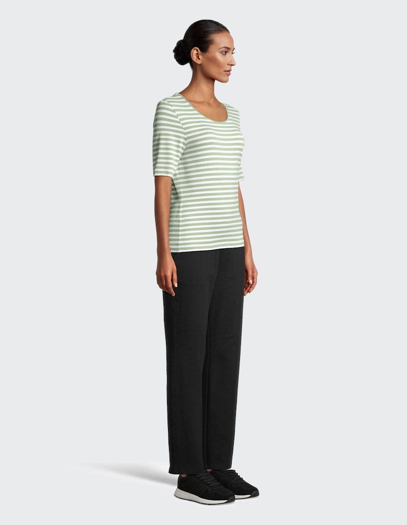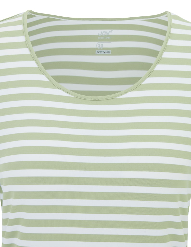 Das T-Shirt ALLISON von JOY sportswear. Ob für zu Hause, im Garten oder auf der Straße, das Streifen-Shirt lässt sich passend kombinieren. Es hat einen etwas tieferen Rundhalsausschnitt und einen körpernahen Schnitt. Der verlängerte Kurzarm sieht nicht nur gut aus, er ist auch perfekt, wenn das Wetter mal frischer wird. Das weiche Baumwollmaterial verfügt über natürlich klimaregulierende Eigenschaften.