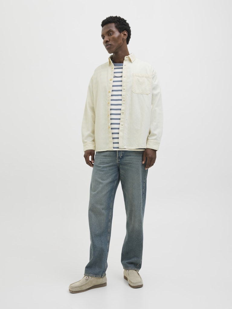Werte deine Basics auf mit einem zeitlosen und hochwertigen Hemd, das perfekt für den Alltag ist.Denim ist ein robustes Köpergewebe aus gefärbten Kettfäden und ungefärbten Schussfäden. - Produkttyp : Jeanshemd - Hals : Hemdkragen - Ärmel : Langarm - Verschluss : Knopfleiste - Taschen : Brusttaschen - Passform : Weit geschnitten