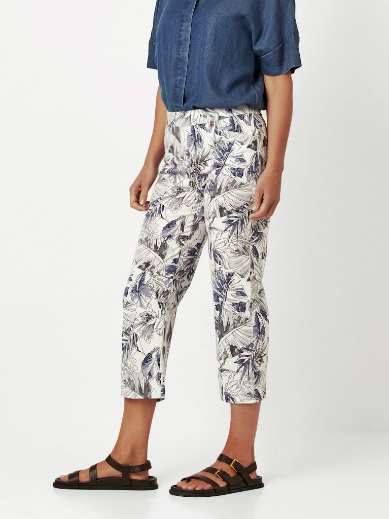 Damenhose Scarlet Wide Leg 6/8 - Hellgrau - Qualität: Tencel Casual Blue Flower - Slim Fit-Hose mit schmalem Oberschenkel - Komfortable Taille und höhere Leibhöhe - Der Komfort-Bund verleiht rundum absolute Bequemlichkeit