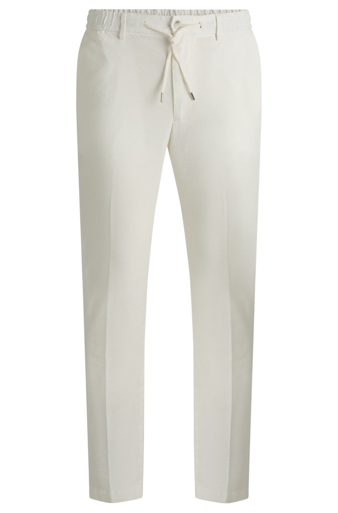 Die BOSS Hose aus einem elastischen Leinen-Mix verspricht optimale Bewegungsfreiheit und ist ein Must-have für den Sommer. Konischer Beinverlauf. Tunnelzugbund.