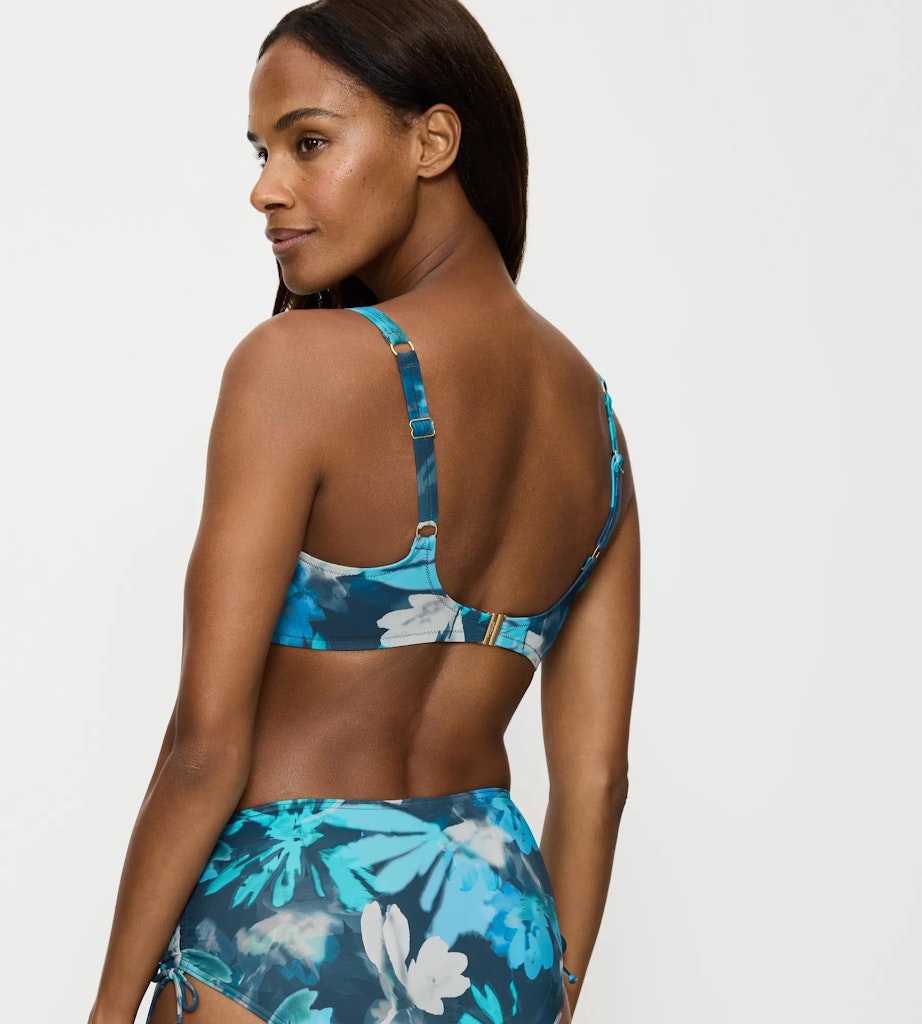 Das Minimizer-Bikini-Oberteil mit Bügel ist ideal für größere Cups und sorgt für eine optische Verkleinerung ohne Komfortverlust. Er ist aus teilweise recyceltem Polyamid hergestellt, fühlt sich weich an und ist strapazierfähig.