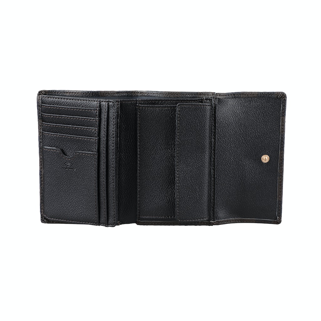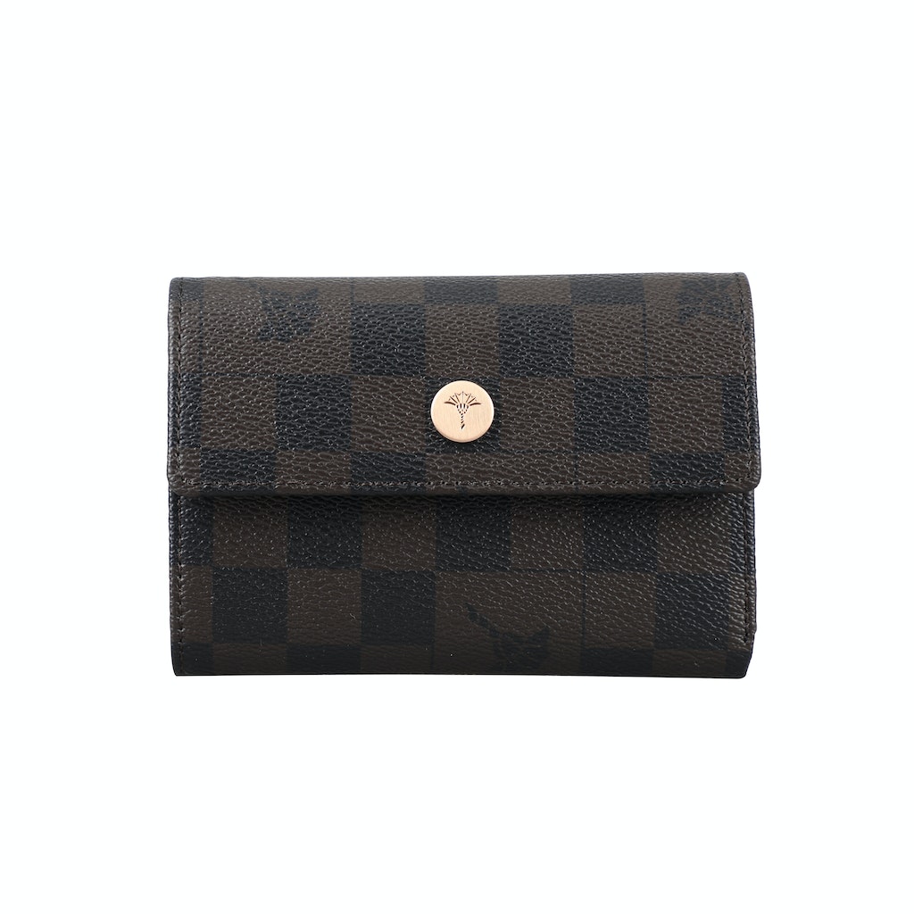 * ein Münzgeldfach mit Überschlag und Druckknopf