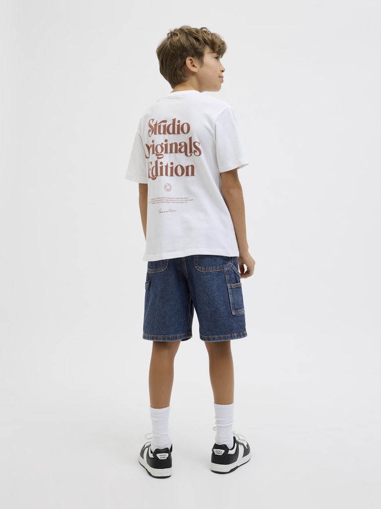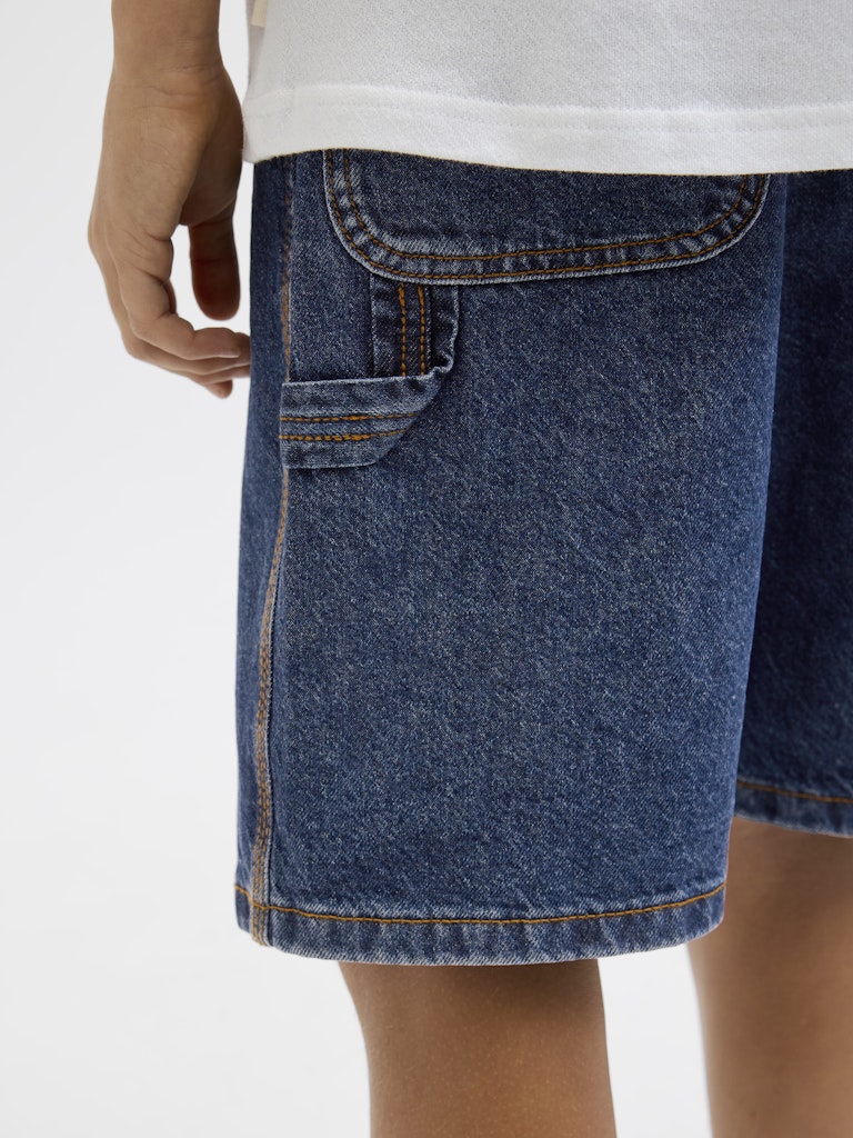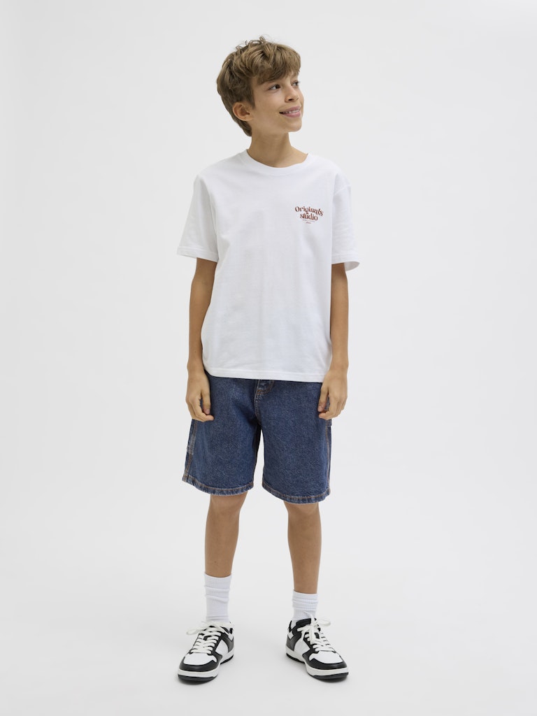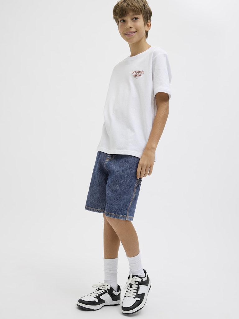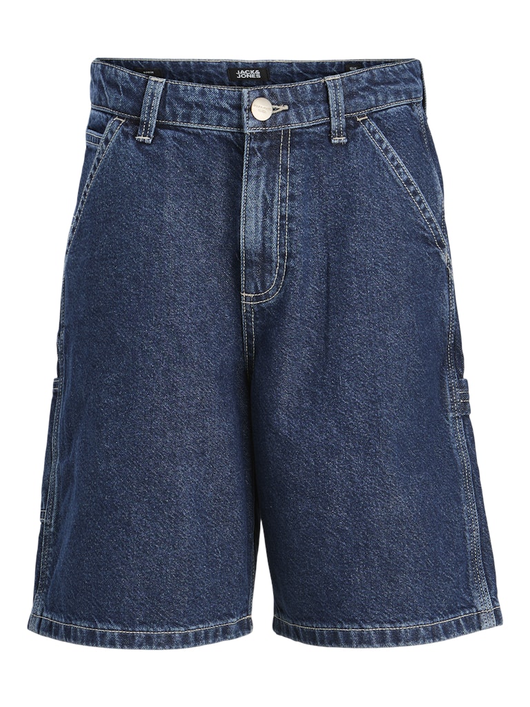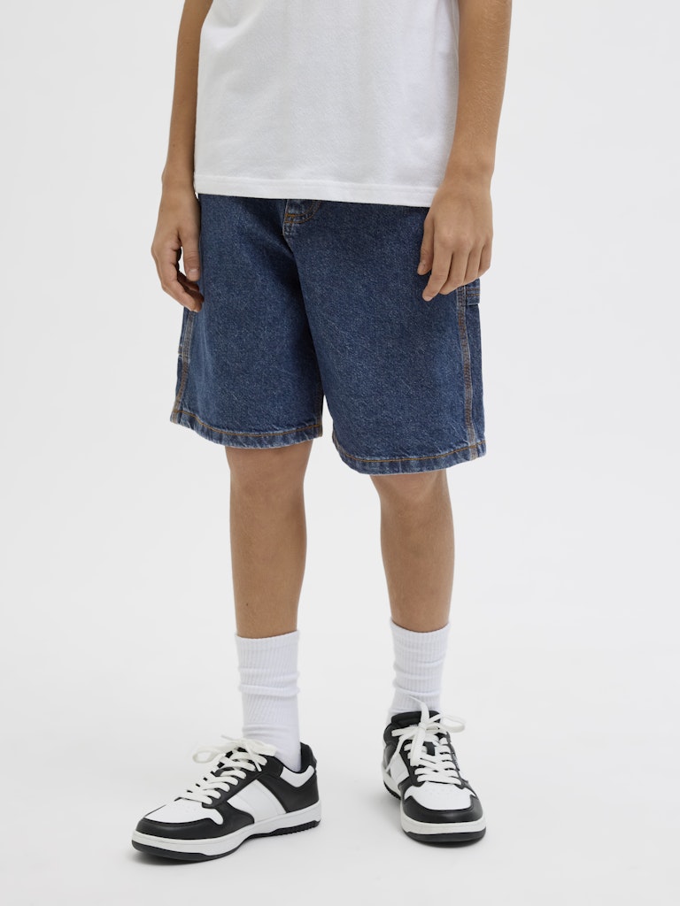 Klassischer Workwear-Style für einen edgy Look.Denim ist ein robustes Köpergewebe aus gefärbten Kettfäden und ungefärbten Schussfäden.Entdecke die aufregende Welt von Jack and Jones Junior, in der Mode durch jugendliche Energie und lebhaften Charme zum Leben erweckt wird. Unsere Kollektionen bieten eine Mischung aus neuen, trendigen Designs, die Jungen im Alter von 3-16 Jahren ansprechen. Tauche in hochwertige und bequeme Styles ein, die speziell für junge Fashion-Liebhaber entwickelt wurden. Bei Jack and Jones Junior interpretieren wir Mode für Jungs im Alter von 3 bis 16 neu, indem wir coole Passformen und moderne Styles kombinieren und dabei immer wieder Elemente aus der Erwachsenenmode einfließen lassen.. - Produkttyp : Loose Fit Shorts - Verschluss : Reißverschluss - Taschen : Gesäßtaschen, Münztasche, Taschen vorn - Taille : Hohe Taille - Waschen : Stonewashed für einen Used-Look mit Faded-Effekten - Körperform : Junior - Passform : Loose Fit mit hoher Taille, lockerem Bein und lockerer Beinöffnung