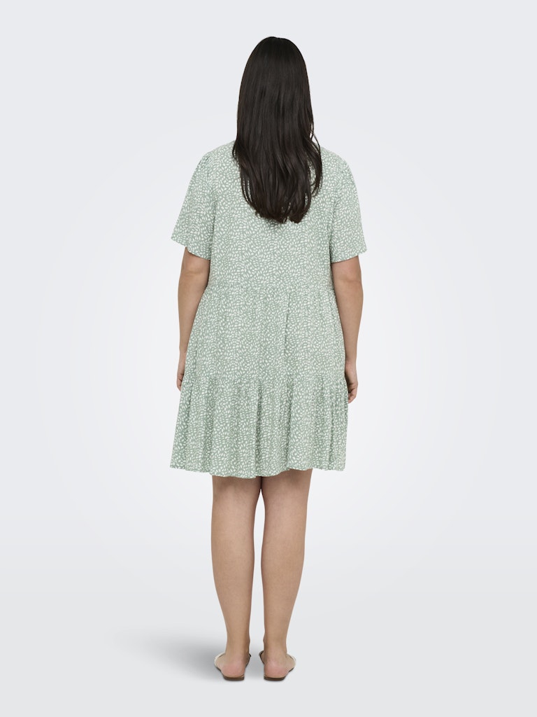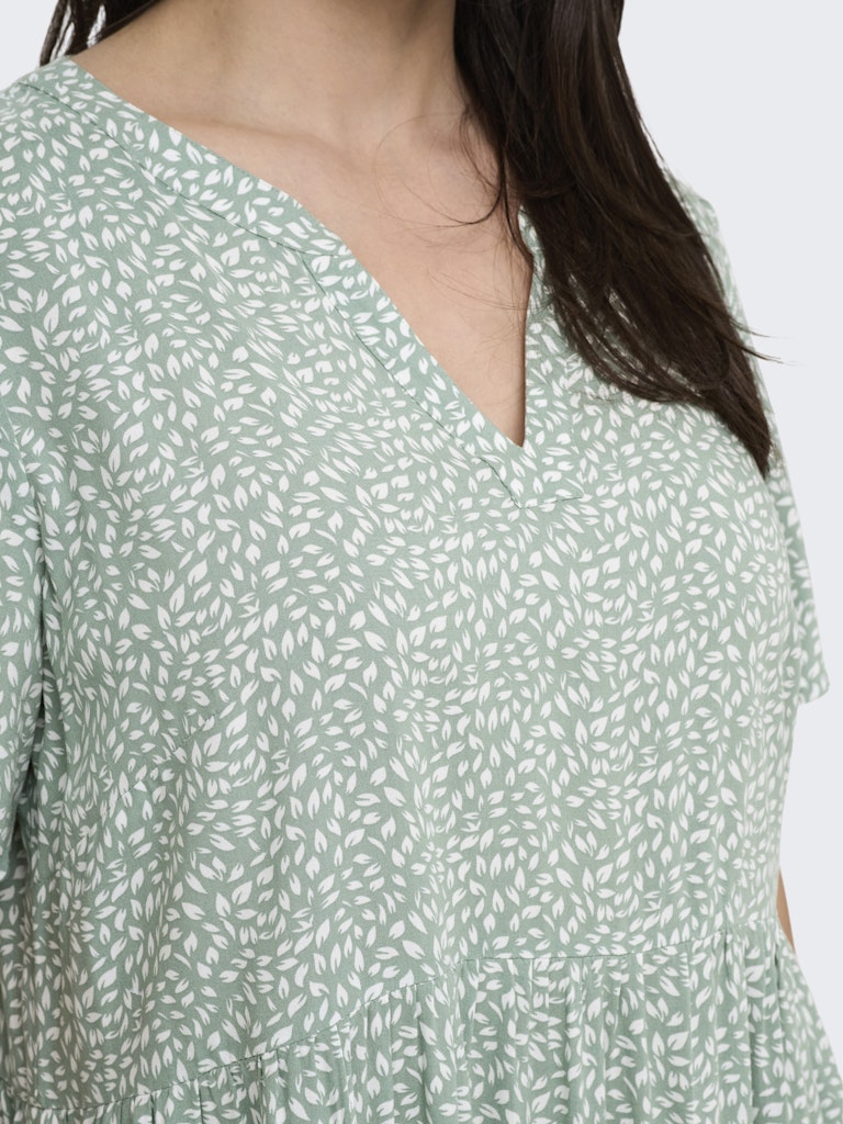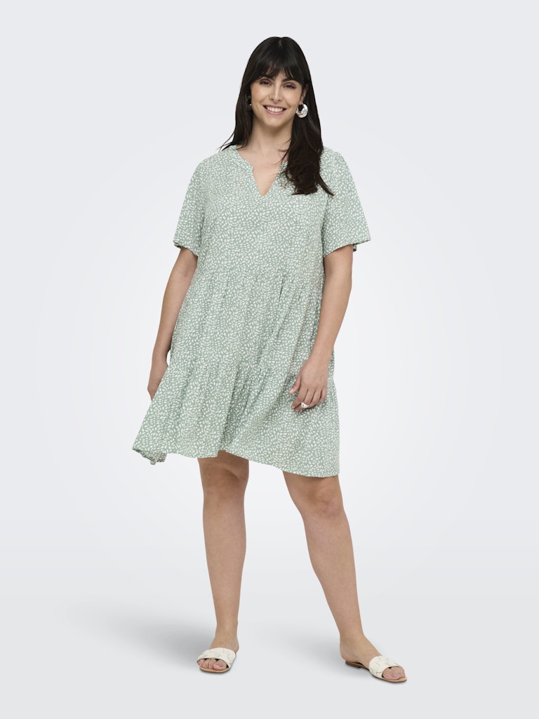Werte deine Garderobe mit einem stylishen Kleid auf und kreiere einen umwerfenden Look, der zu jedem Anlass und jeder Jahreszeit passt.Curve-Styles sind so designt, dass sie kurvigen Frauen perfekt passen.. - Produkttyp : Kleid - Hals : V-Ausschnitt - Ärmel : Kurzarm - Ärmel : Kastige Ärmel - Details : Abnäher in der Taille - Körperform : Curve - Passform : Normal geschnitten