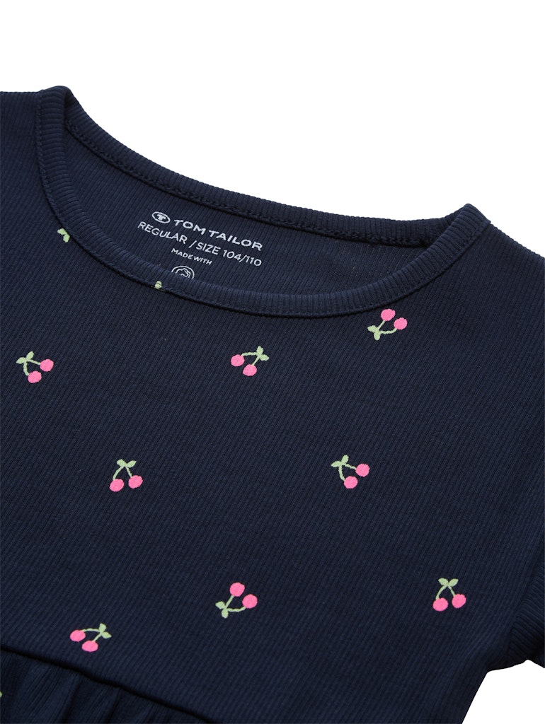 * Kurzes A-Linien Kleid mit Allover-Print. Aus einem elastischen Ripp-Material.