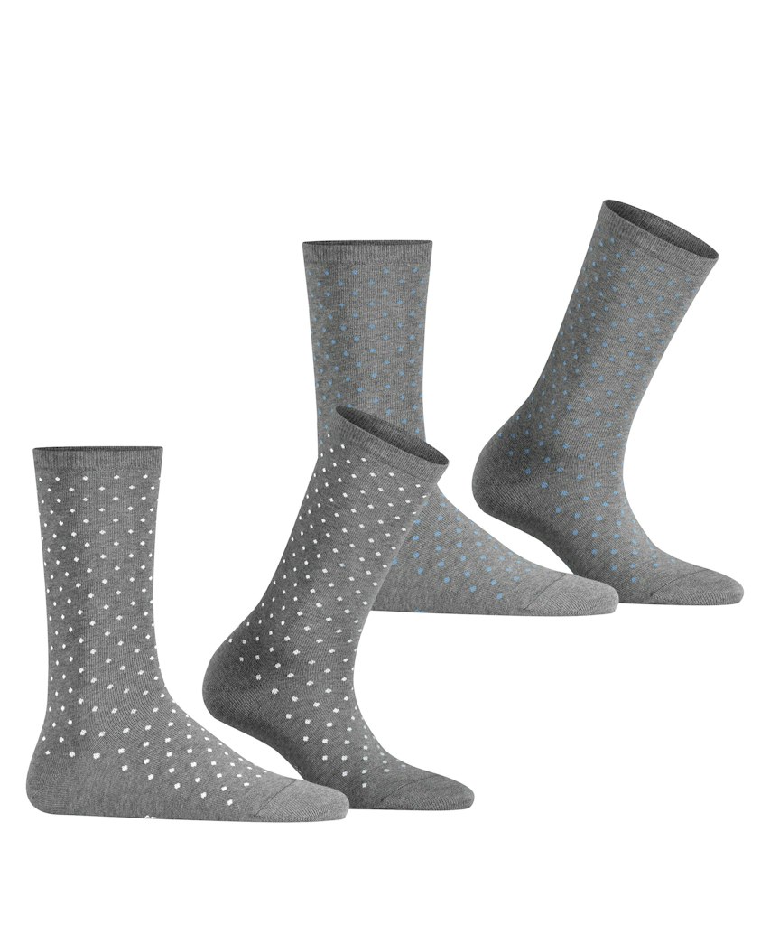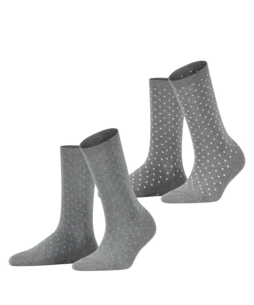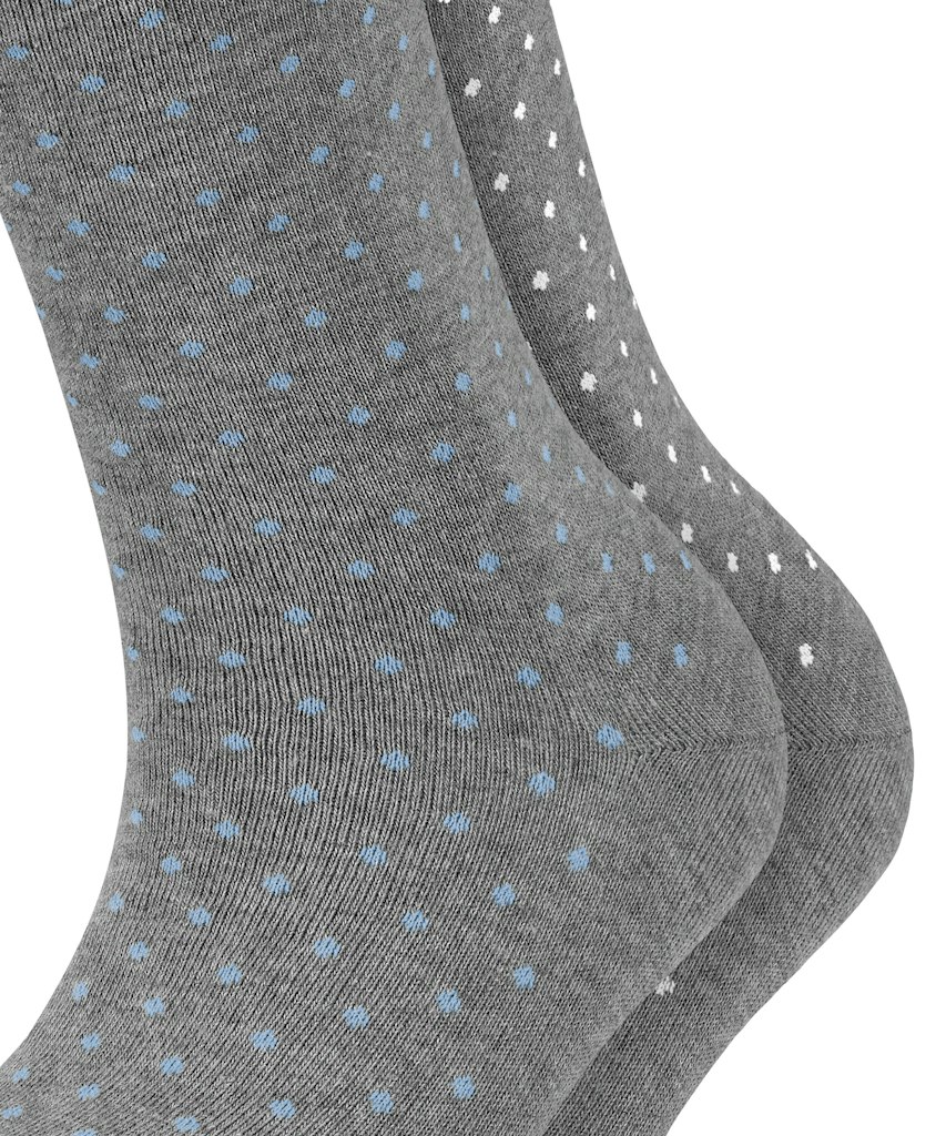 Diese Socken mit femininem Pünktchenmuster und einem elastische Bündchen peppen jeden schlichten Schuh auf. Die zwei gleich gemusterten Socken mit farblich unterschiedlichen Punkten sind im Doppelpack erhältlich und ein echter Allrounder. Aus hochwertiger Bio-Baumwolle gestrickt.