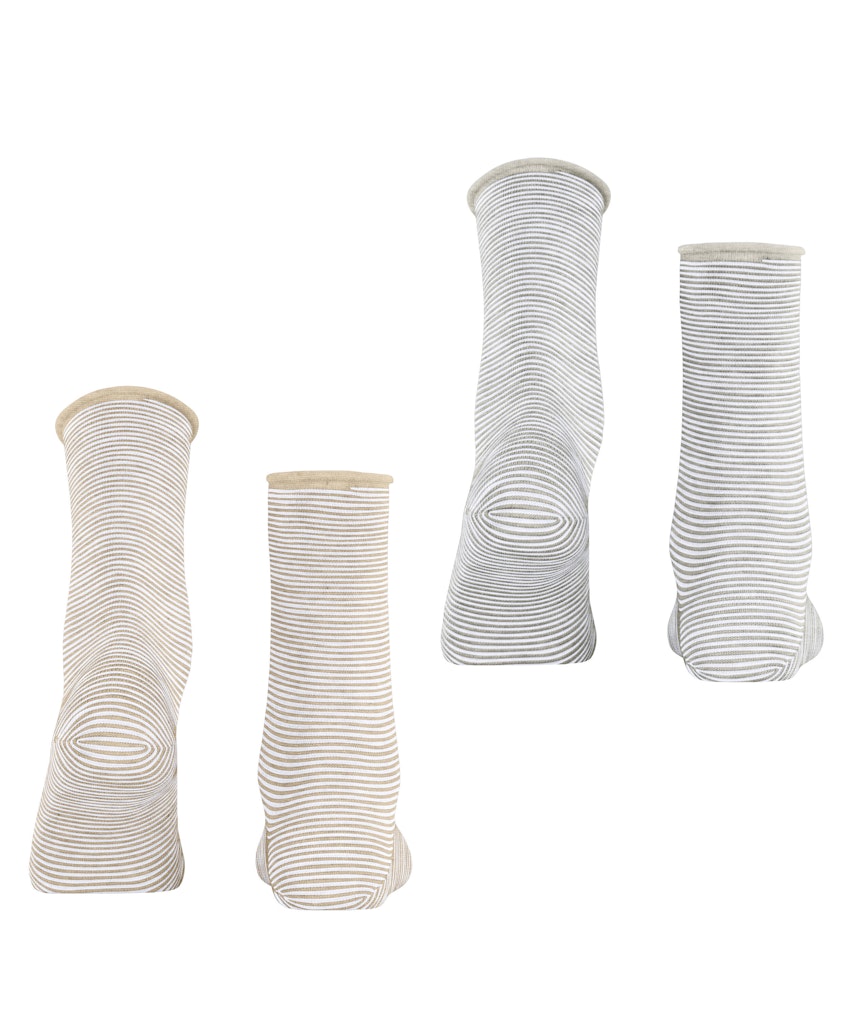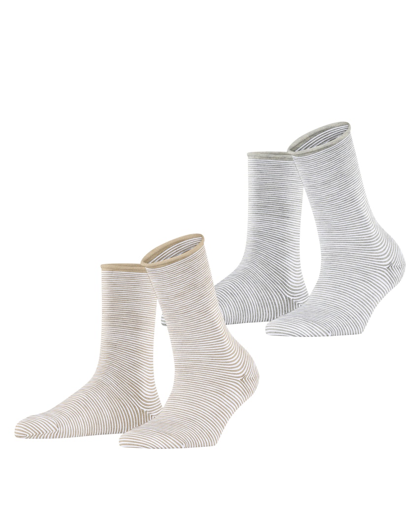 Ein Maximum an sommerlichem Chic erzielt diese Socke mit ihrem feinen Streifenmuster und ihrem femininen Rollbündchen. Der elastische Baumwollmix schmiegt sich angenehm an den Fuß. Der Pack enthält zwei unterschiedliche Farben. Aus hochwertiger Bio-Baumwolle gestrickt.