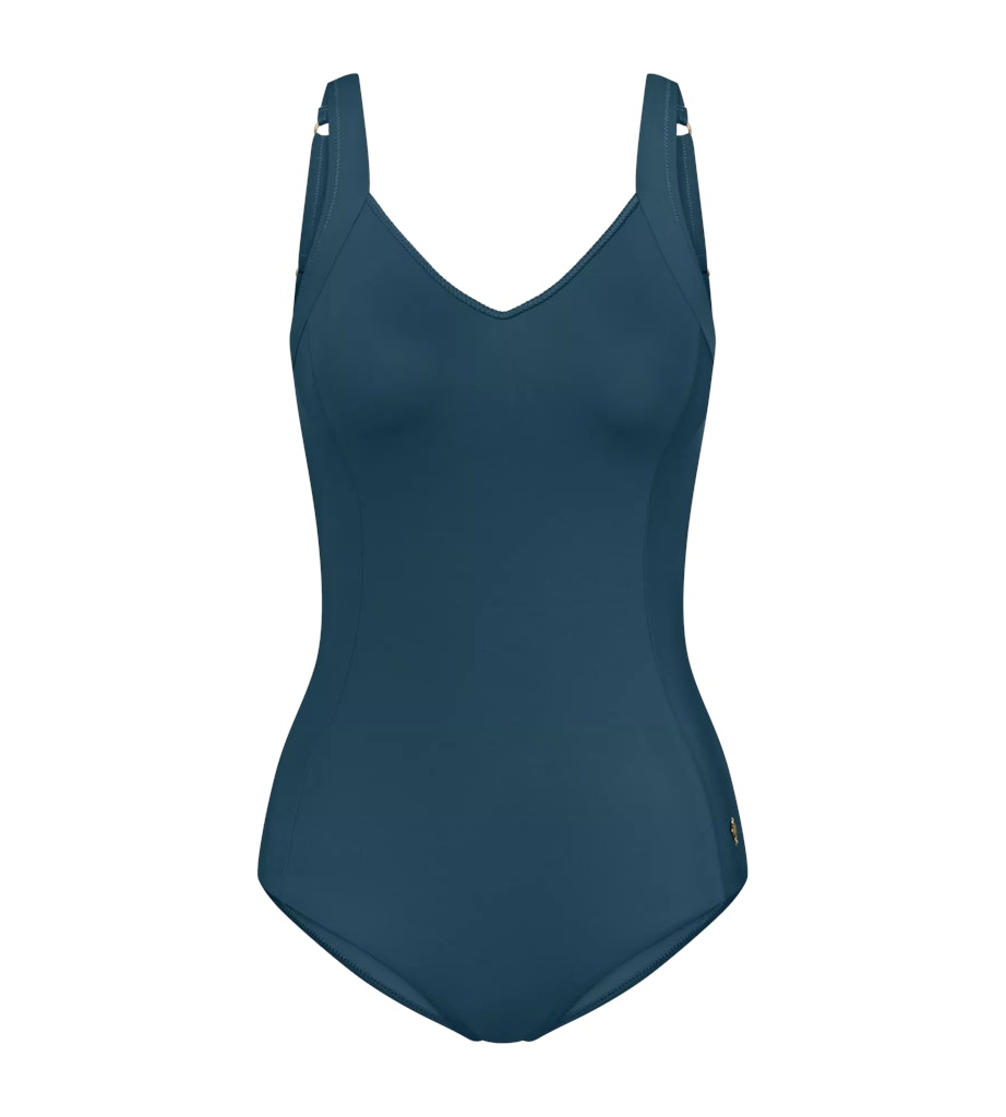 Dieser Badeanzug mit Bügel ist für Frauen gedacht, die eleganten Look mit gutem Halt und zusätzlichen Komfort suchen. Die geschwungenen Seitennähte und die dekorative Borte am Dekolleté sorgen für eine schmeichelnde und elegante Silhouette. Er ist aus teilweise recyceltem Polyamid hergestellt, fühlt sich weich an und ist strapazierfähig.